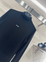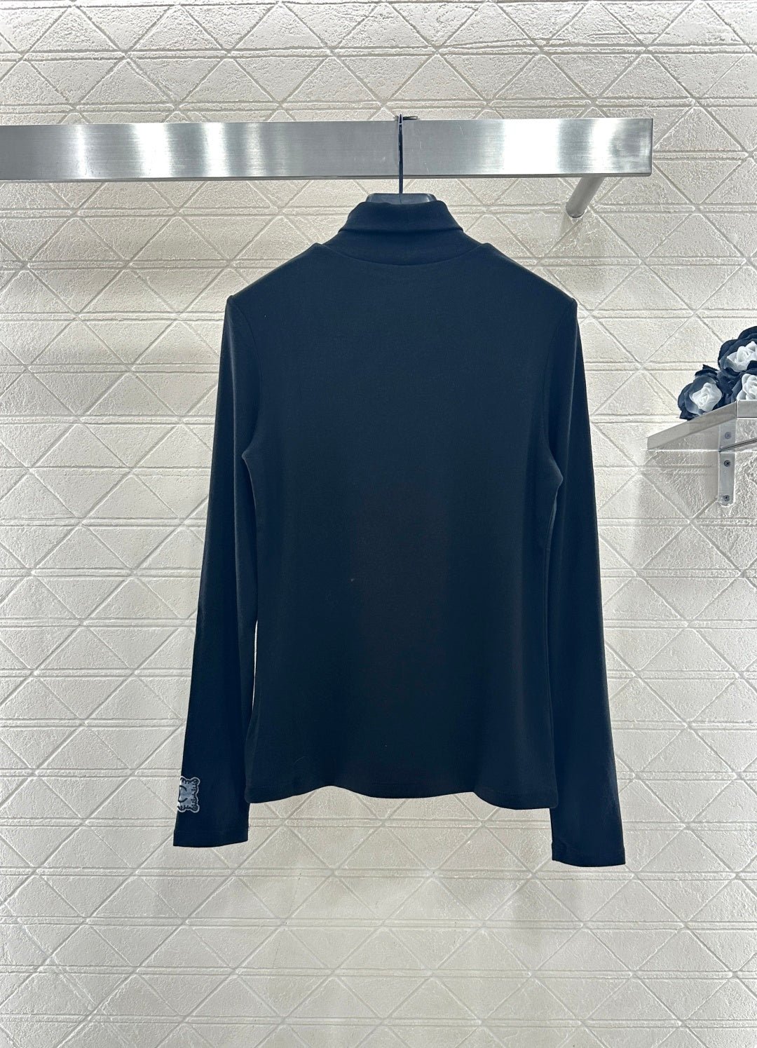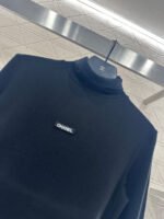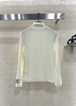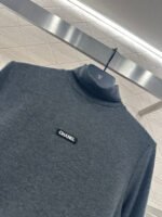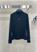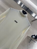 Made of soft, delicate nylon, this high-neck knit base layer is comfortable and versatile in a solid color. The vertical ribbed texture of the yarn fabric creates a slimming effect. The embroidered logo on the chest showcases the brand’s style, exuding understated elegance. The stretchy fabric conforms to the body, enhancing your overall look.