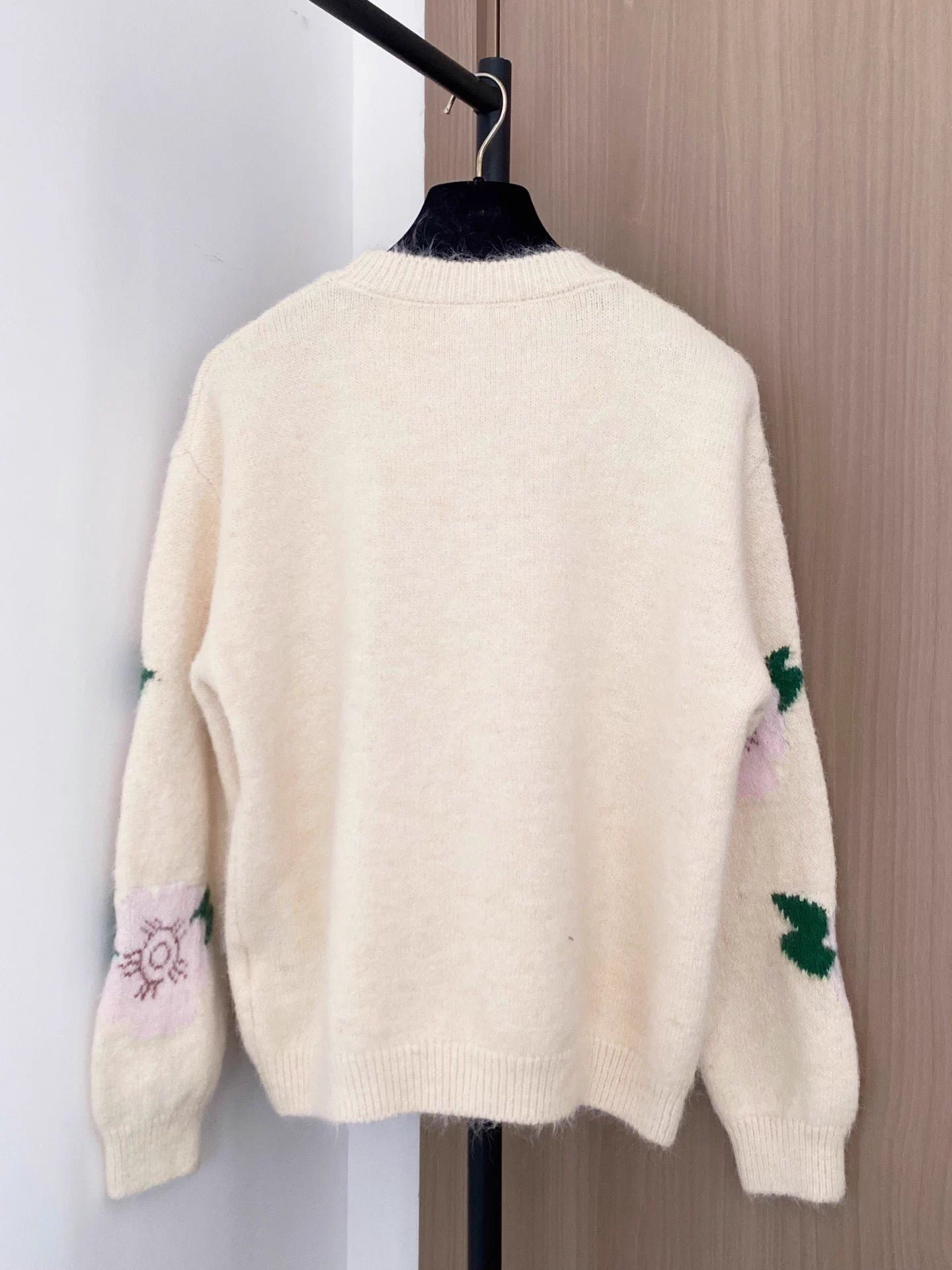 Features a floral jacquard design, round neck, long sleeves, and a relaxed fit. Comfortable for autumn and winter, soft and gentle on the skin. Looks great with pants or skirts, exuding a youthful and gentle style.