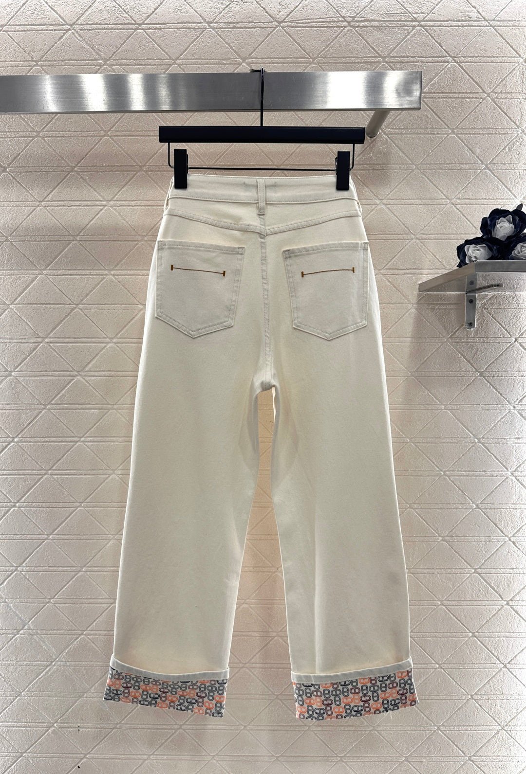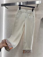 Made of twill cotton denim, these high-quality, stretchy jeans offer a comfortable and stylish fit. The straight-leg, pig-nose design features a flattering cut that slims the legs. The sophisticated and minimalist style is enhanced by a colorful pig-nose logo peeking out from the folded-up hem, adding depth and highlighting the brand’s style. The relaxed and elegant look is flattering and forgiving, creating a slimming and leg-lengthening effect with a classic, understated elegance.