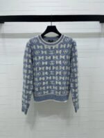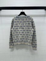 Made from premium wool yarn, this high-quality sweater offers superior texture and comfortable wear. Featuring a crew neck and long sleeves, the design is finished with ribbed edges for a unified look. The overall silhouette is sophisticated and structured. A full-body bow pattern and logo add a touch of modern style.