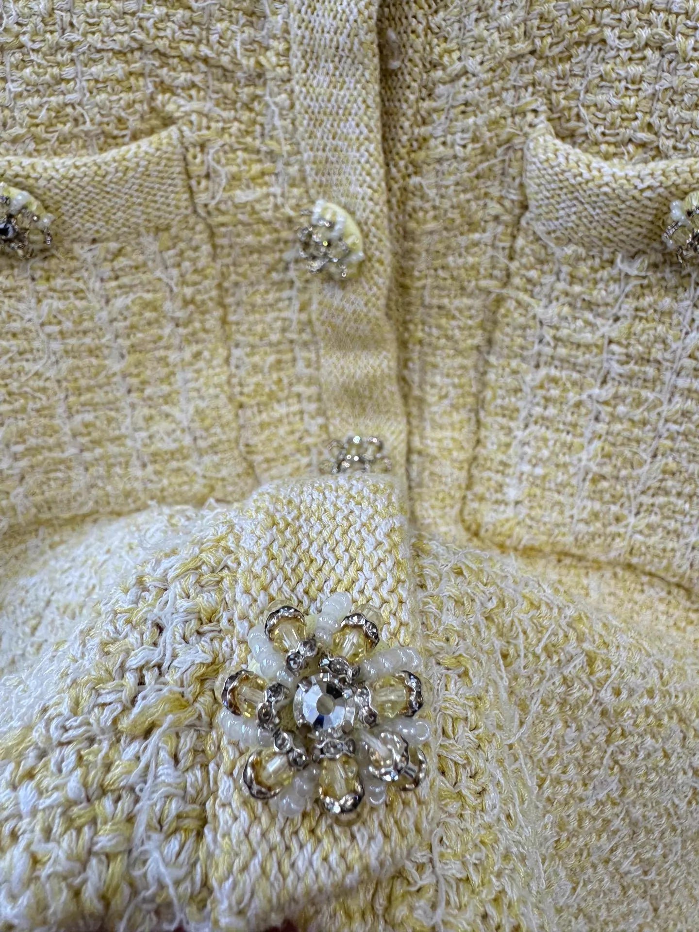 Pearl and floral buttons add a touch of luxury.