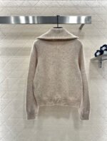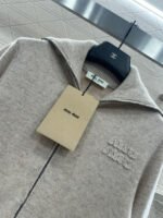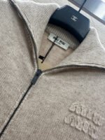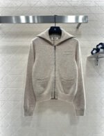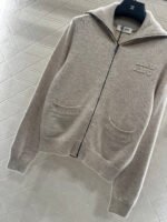 Crafted from wool yarn, this high-quality knit cardigan boasts a luxurious feel and exceptional softness. Featuring a turn-down collar and zip-up design, the ribbed trim and smooth, flowing lines of the knit create a refined and sophisticated look. A logo adorns the chest, highlighting the brand’s style and adding a touch of chic sophistication. The tailored, fitted silhouette flatters the figure and offers a relaxed, preppy style.