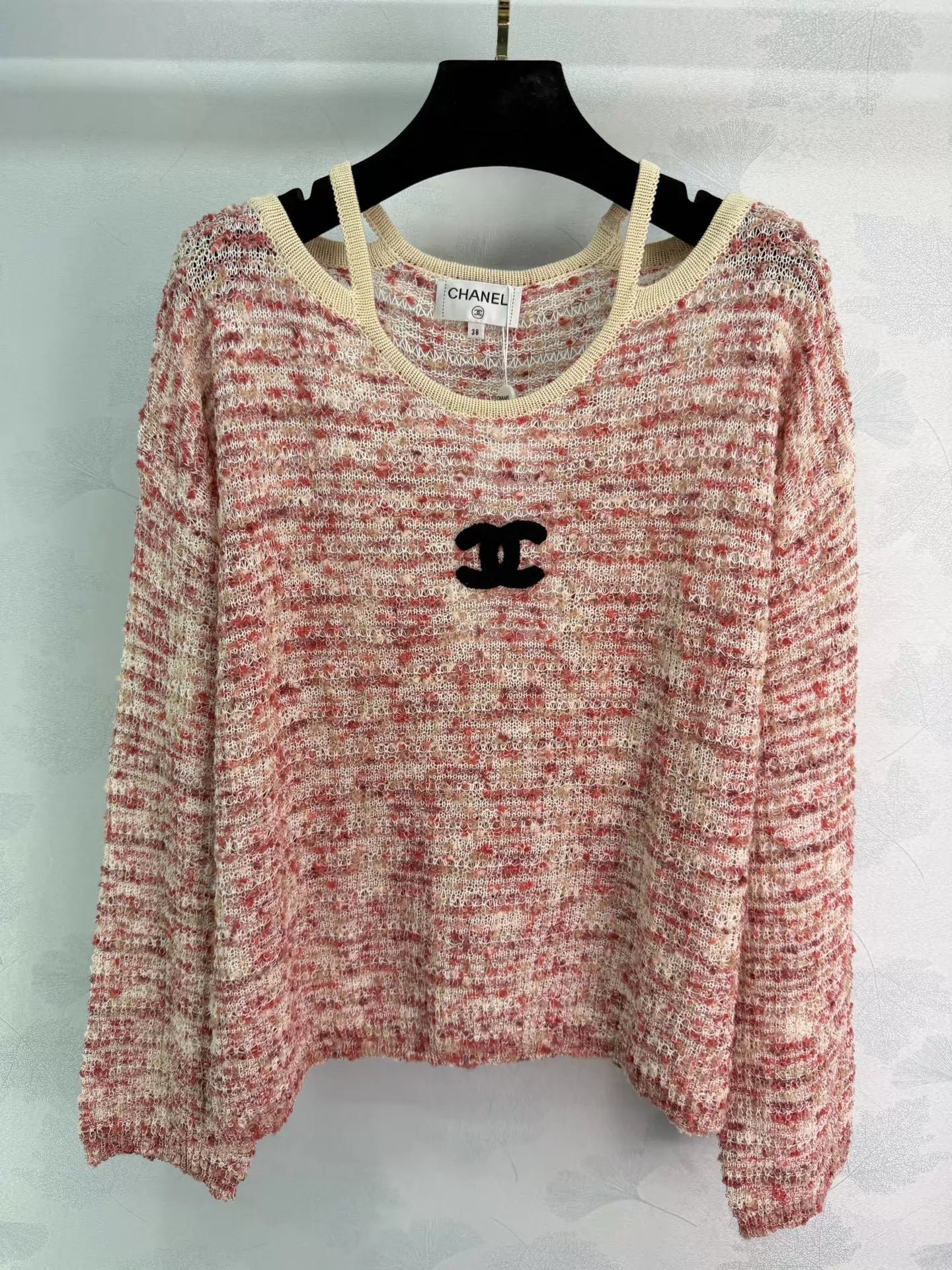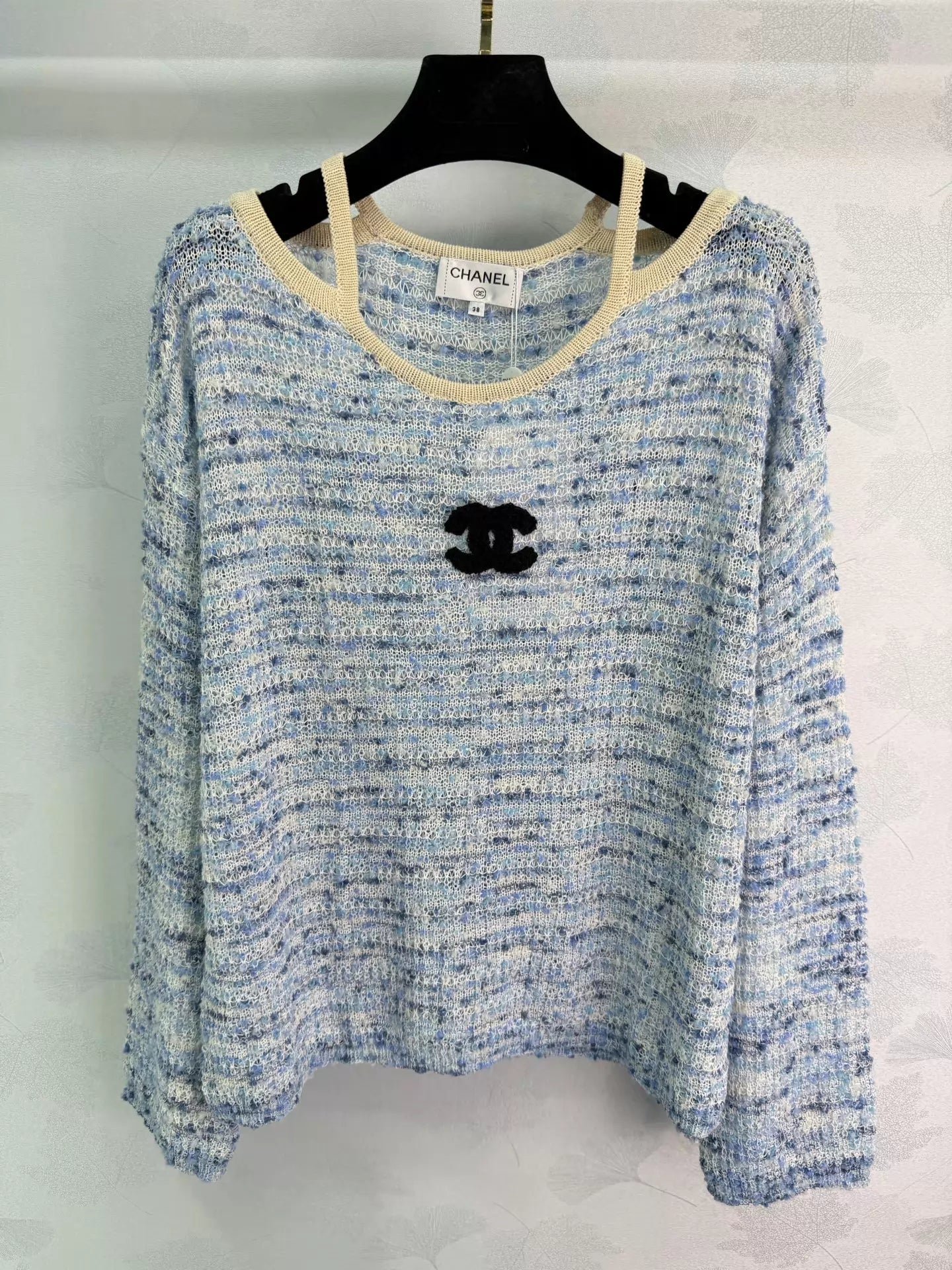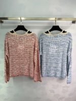 The black double-C logo is highly recognizable! The relaxed fit and crew neck design, along with the delicate beige piping details, make it suitable for both casual and sophisticated occasions. The custom-made yarn is soft and warm, and it pairs beautifully with trousers or skirts, effortlessly creating an elegant and relaxed style.