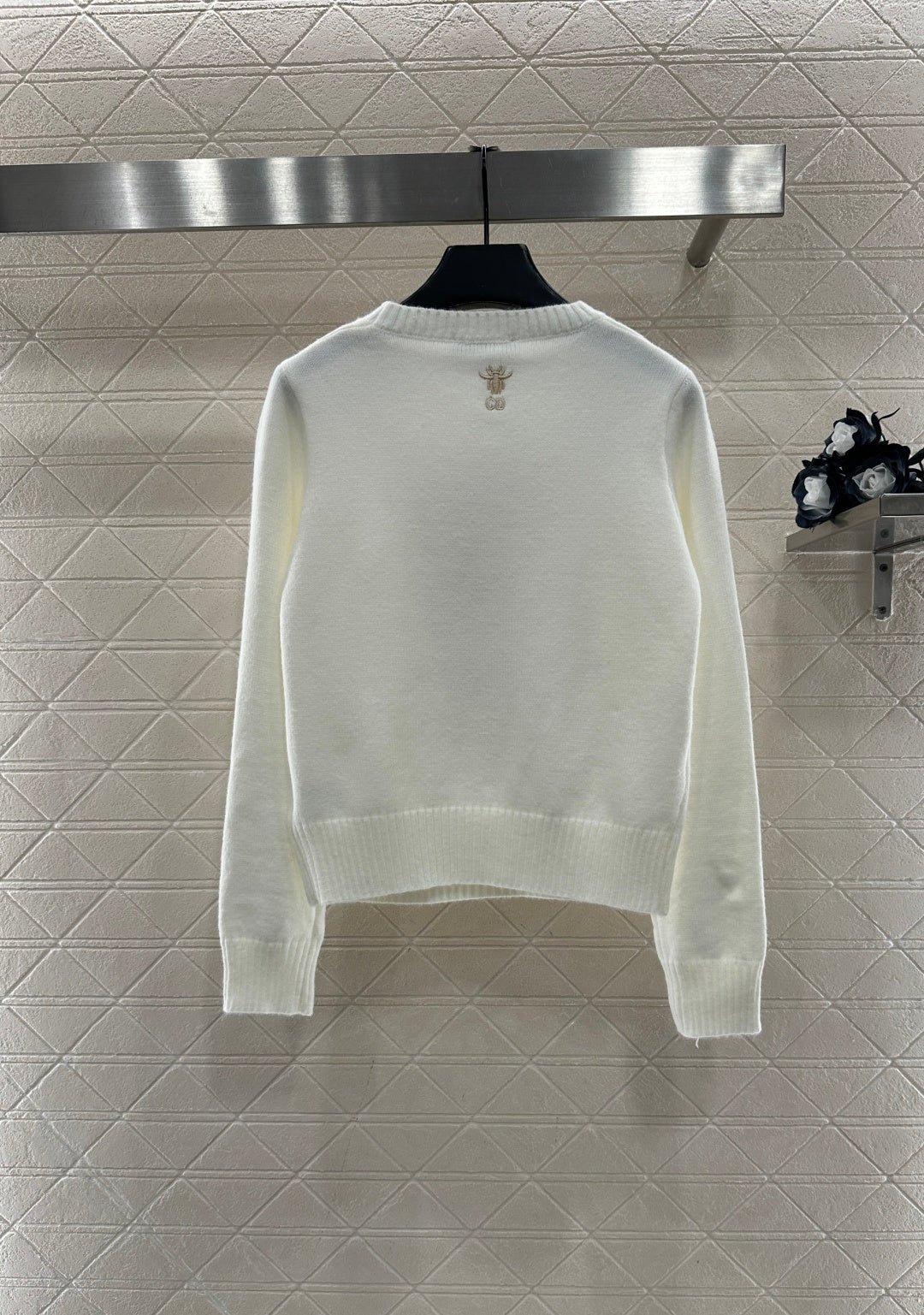 Crafted from wool yarn, this comfortable and high-quality round-neck knit pullover sweater features a large, centrally embroidered logo with a scattered starry sky motif, echoed by a bee logo at the back neckline. The ribbed elastic trim provides a snug fit for warmth and freedom of movement. The classic fit ensures a stylish and fashionable look.