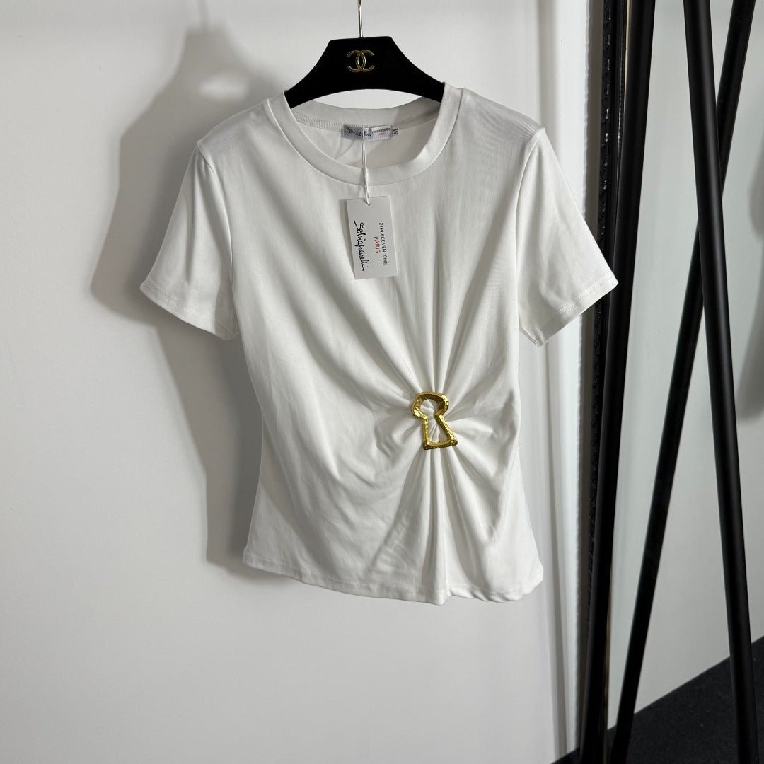 Ruffled Slim Fit Ribbed T-Shirt