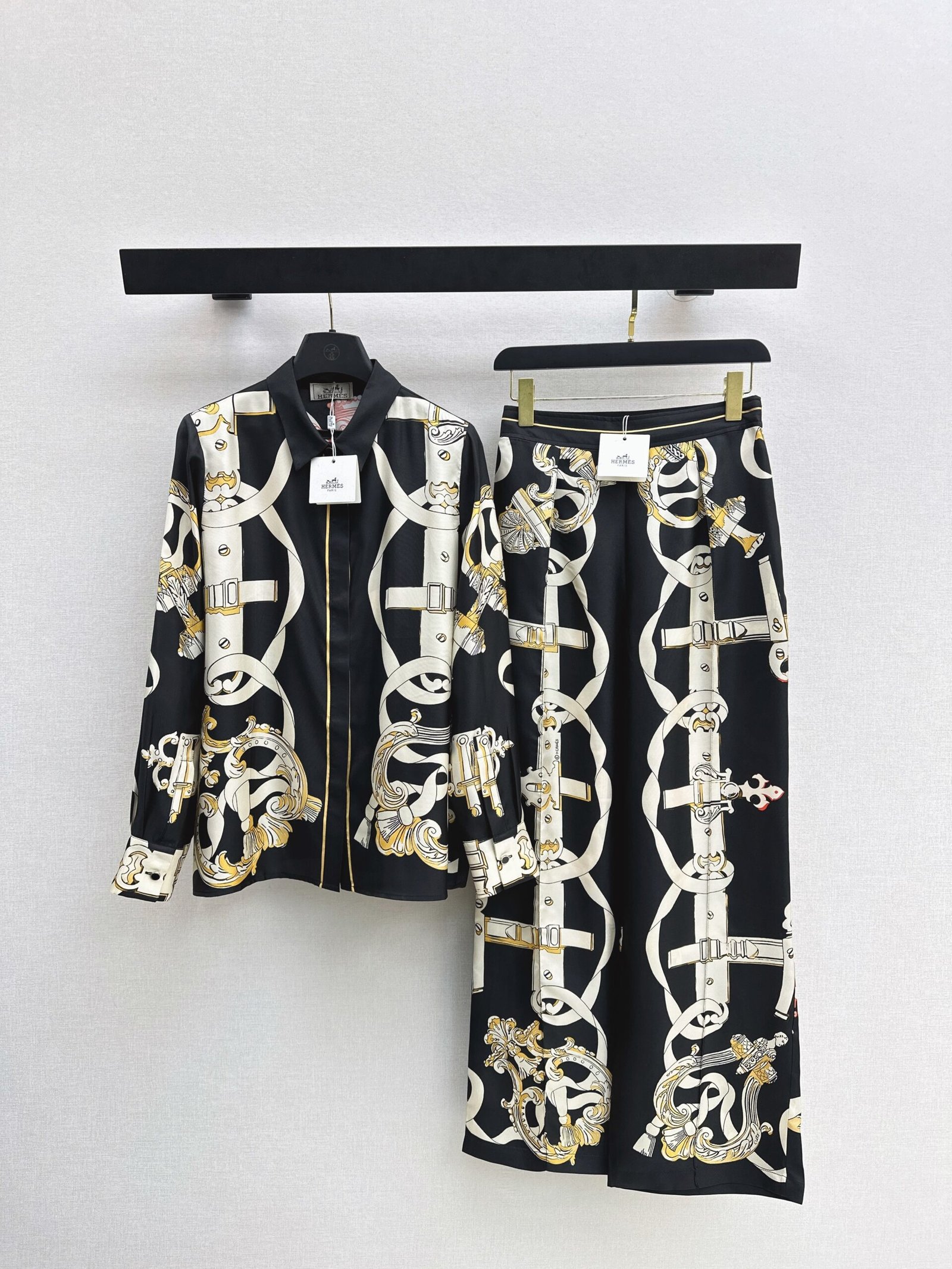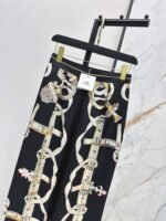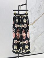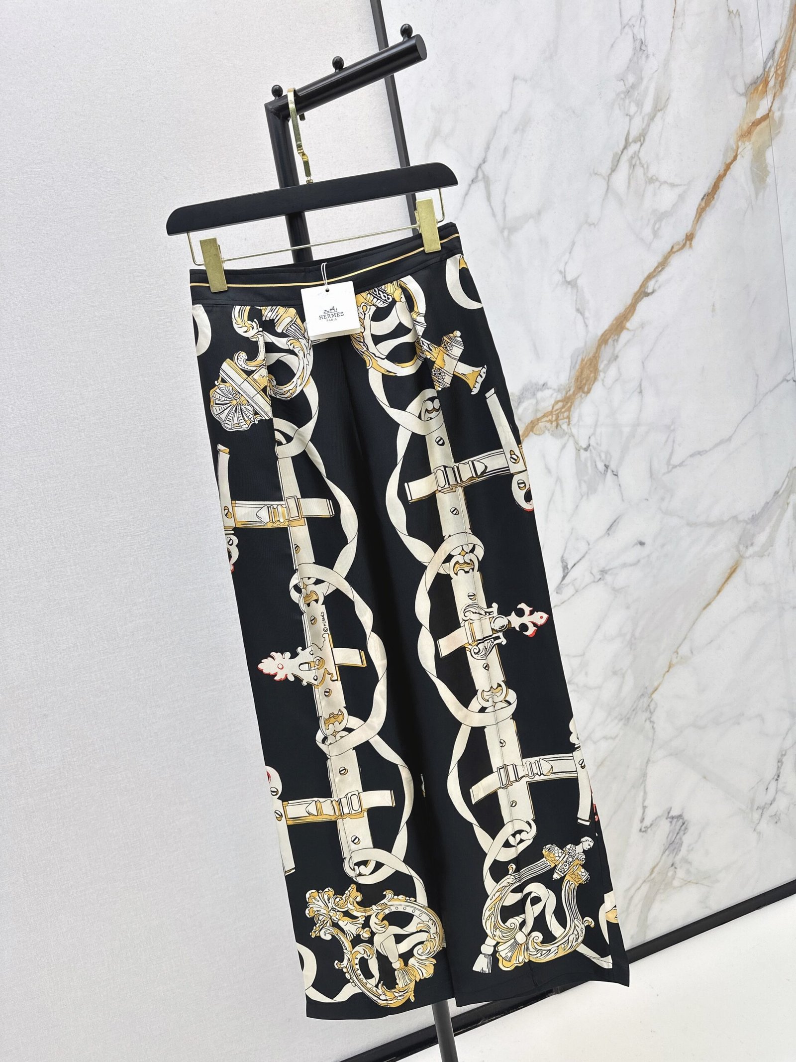 100% silk twill fabric with a superb texture. Elegant toothpick stitching and pleats create a casual and sophisticated straight-leg silhouette. Stunning color combination and full-line print for a high-end look. Elastic back waistband for a flattering fit that flatters all body types and creates a slimming effect