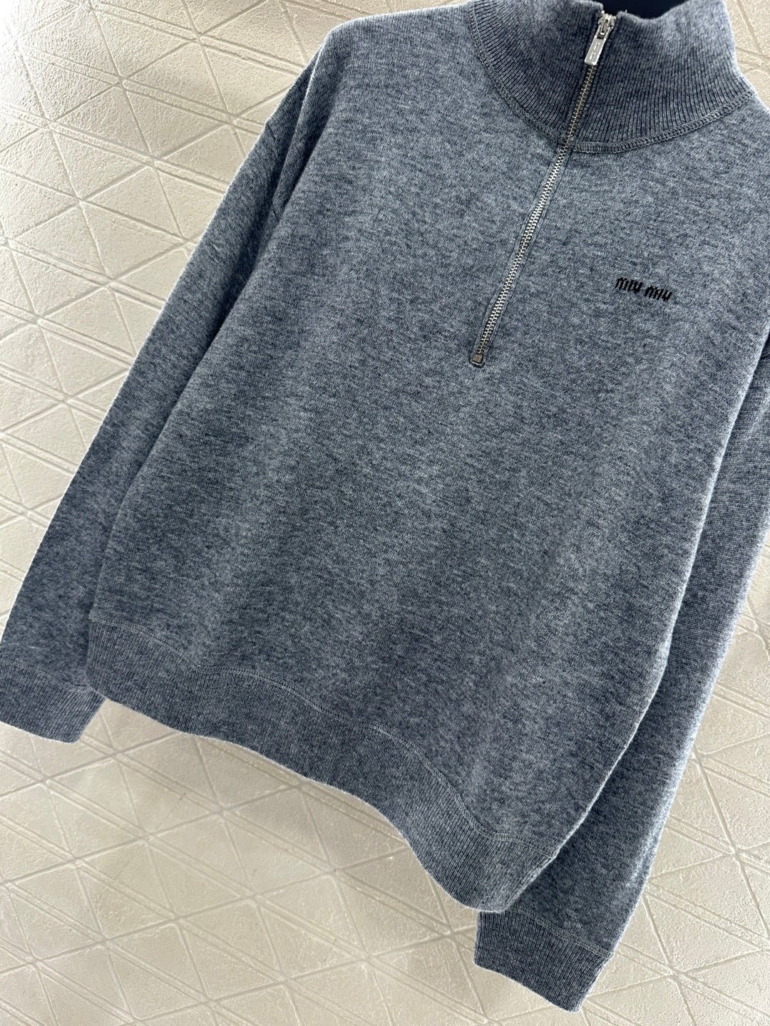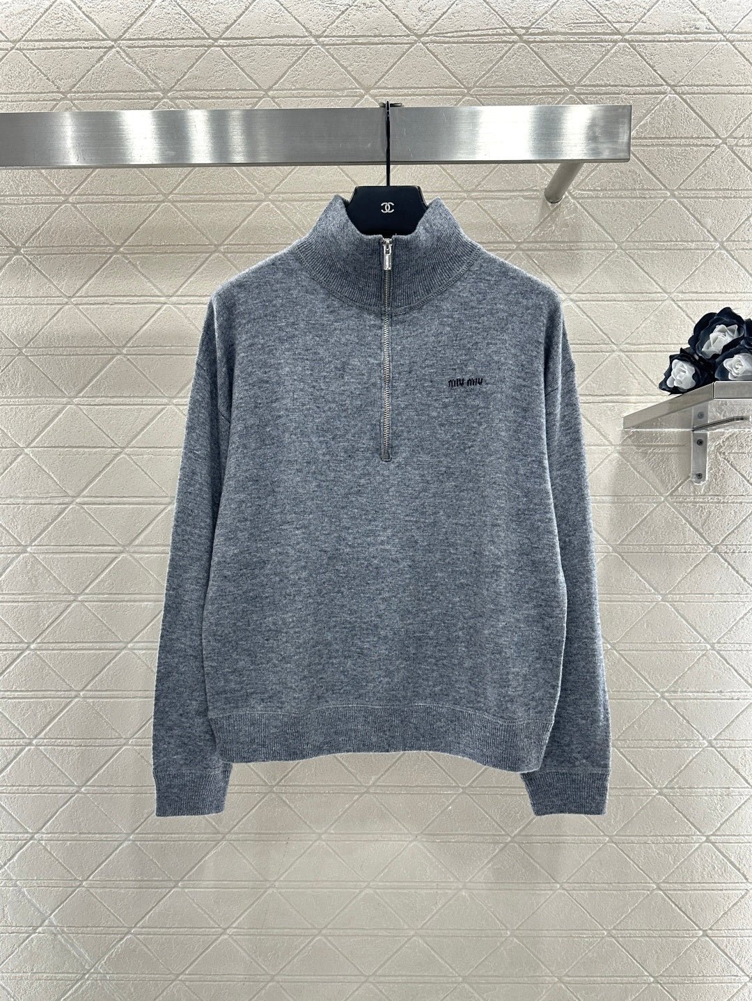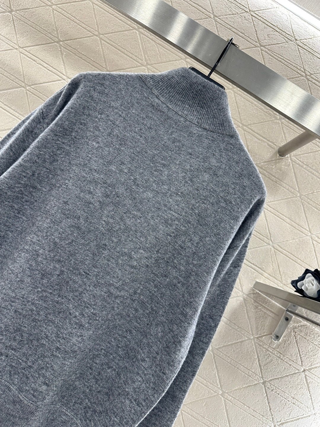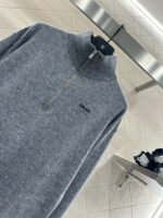 Crafted from wool yarn, this sweater offers exceptional comfort and a luxurious feel. Features a stand-up collar, pullover design, and a zip-up half-open placket for adjustable fit. A logo logo on the chest adds a touch of brand sophistication. Ribbed elastic edges provide a snug, warm fit. The classic cut is both stylish and versatile.