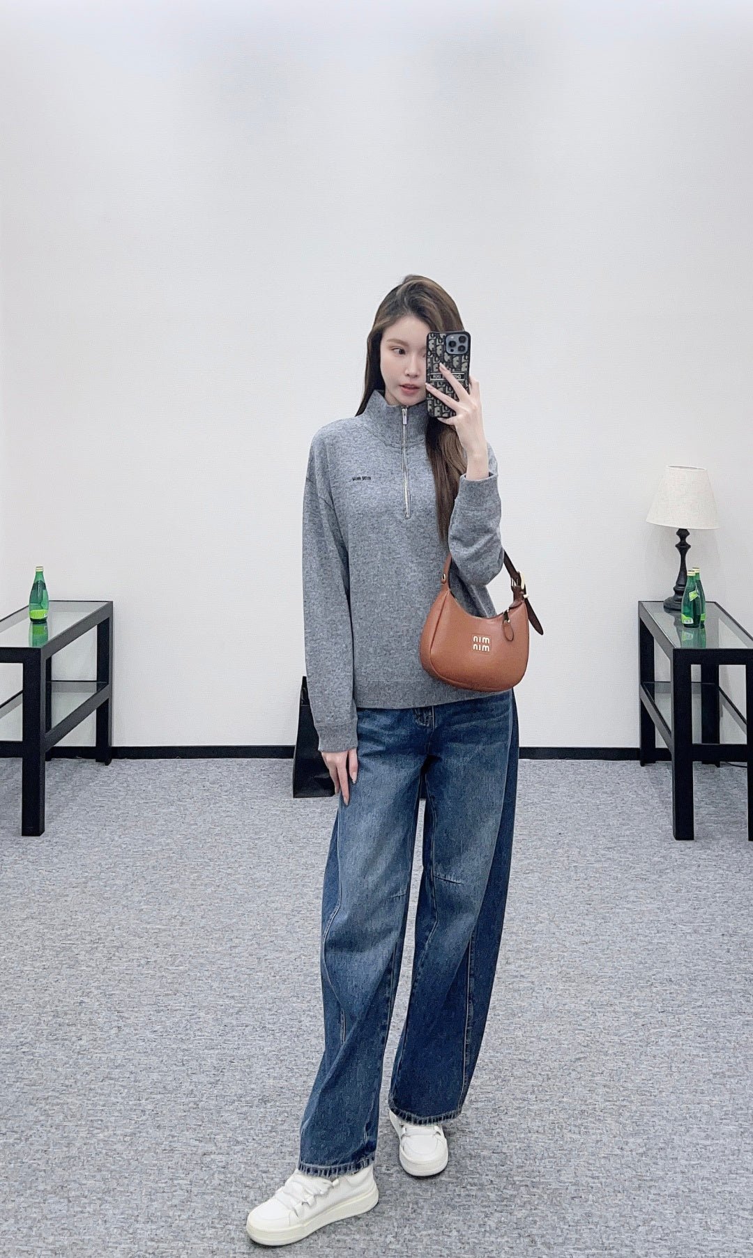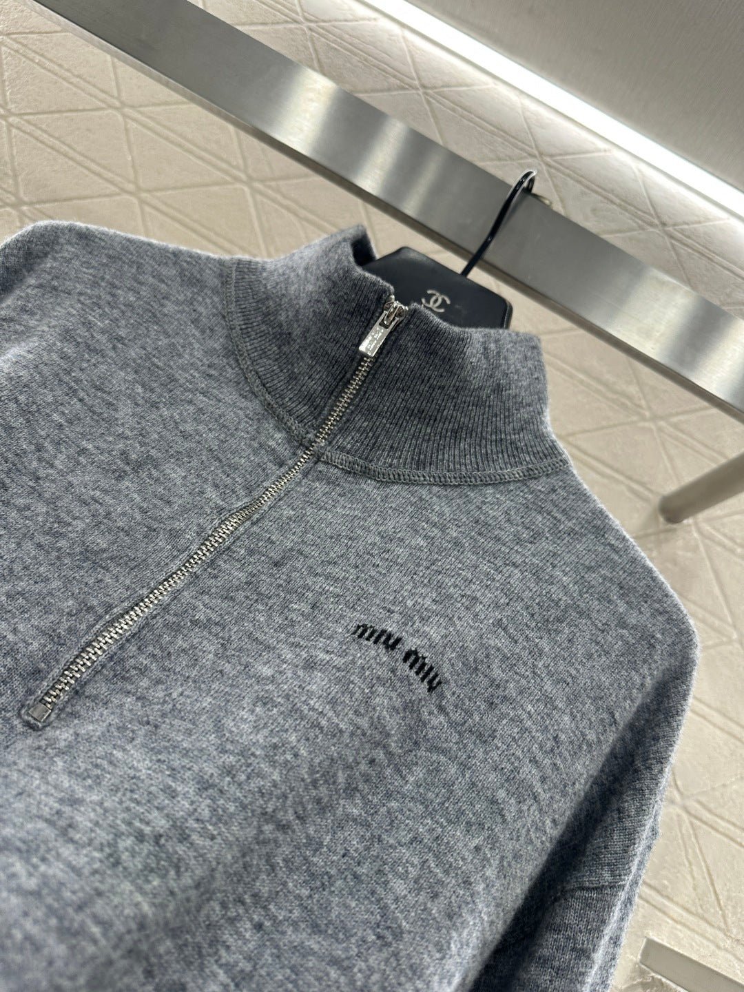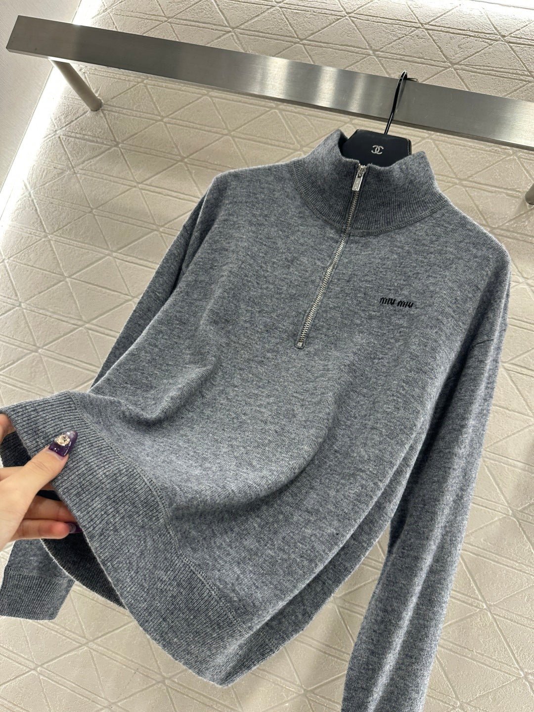 Crafted from wool yarn, this sweater offers exceptional comfort and a luxurious feel. Features a stand-up collar, pullover design, and a zip-up half-open placket for adjustable fit. A logo logo on the chest adds a touch of brand sophistication. Ribbed elastic edges provide a snug, warm fit. The classic cut is both stylish and versatile.