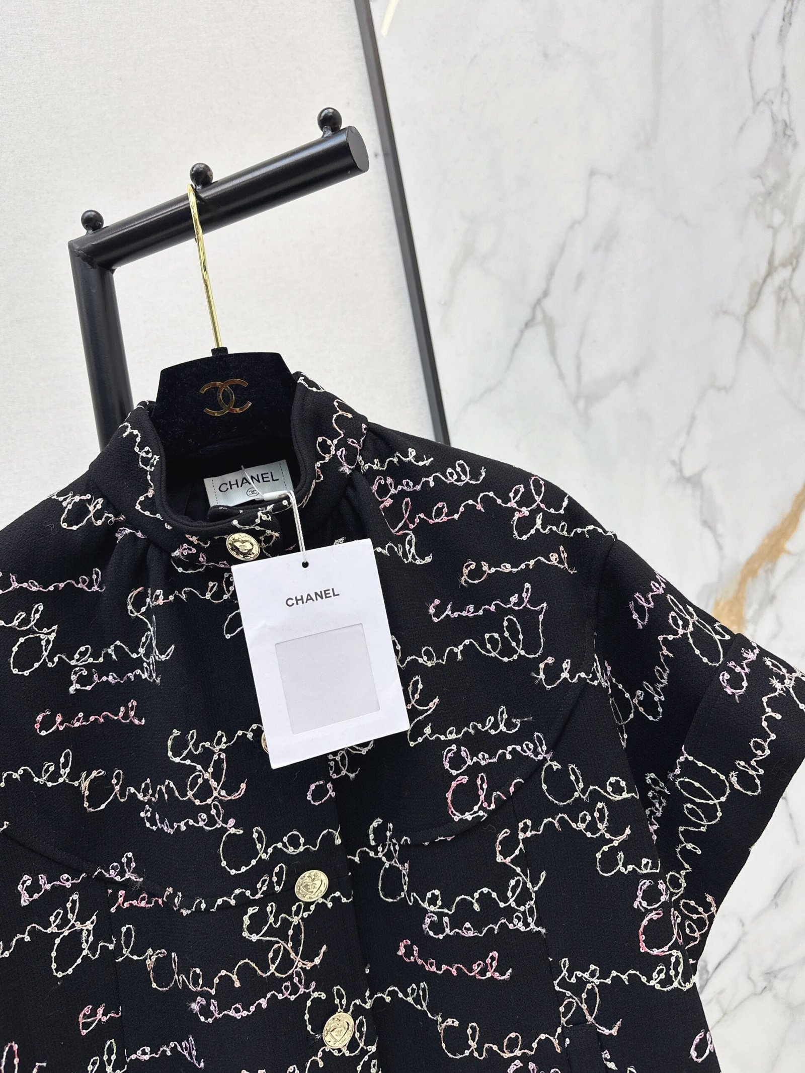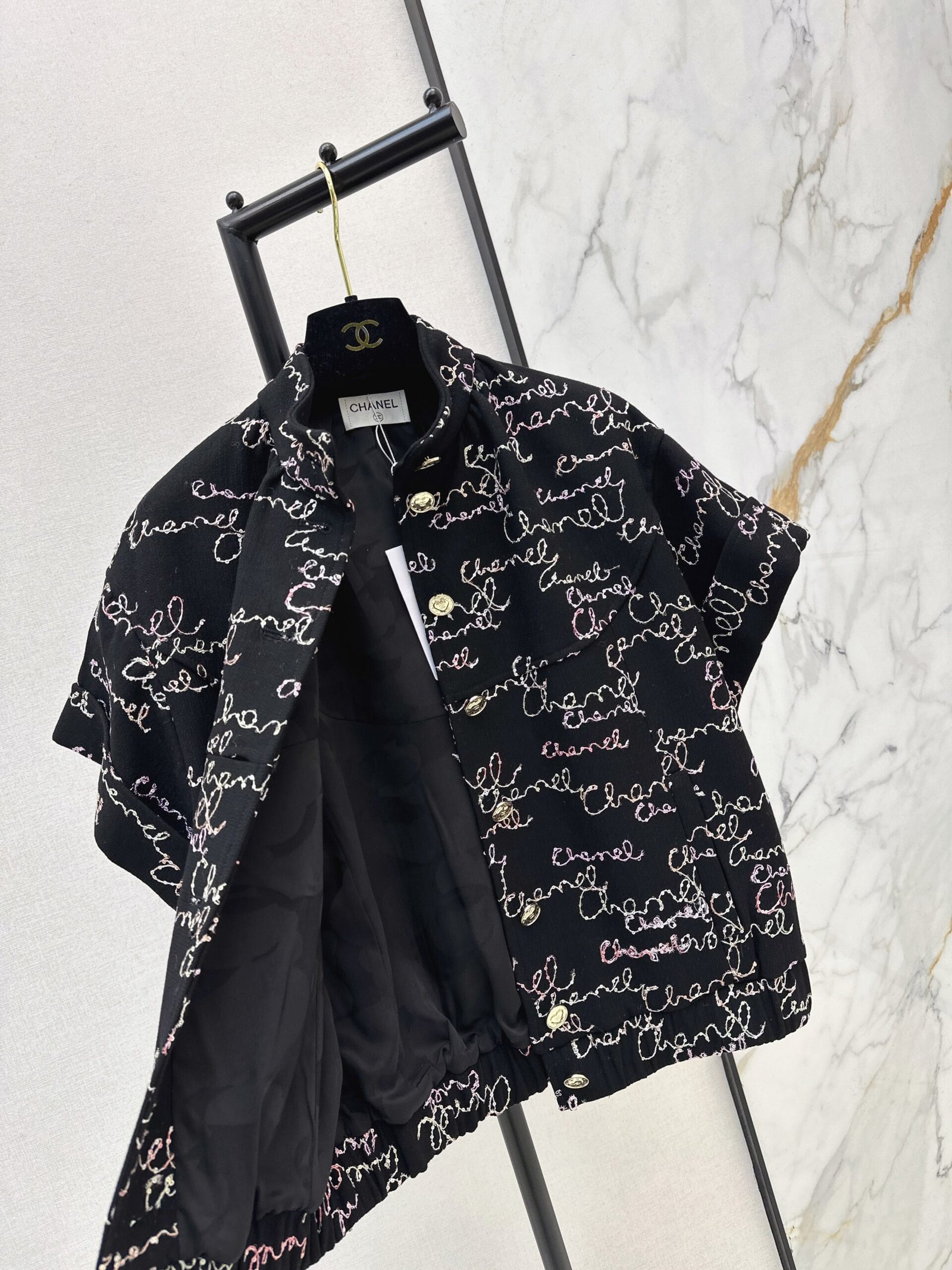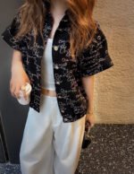 Loose-fitting silhouette, versatile and flattering for all body types. Rolled-up cuffs and elastic hem create a casual yet stylish look. Custom-designed fabric with colorful graffiti lettering and sequin embroidery for a delicate texture. A must-have for sophisticated women, this vest boasts a retro-modern, fashionable, and high-end vibe.