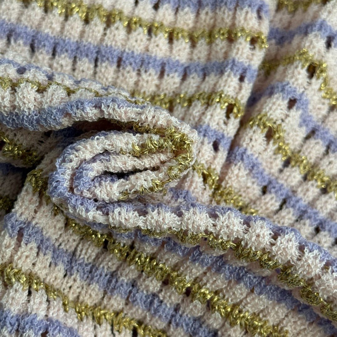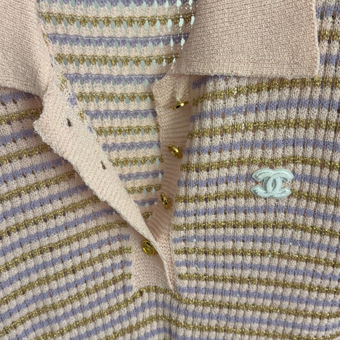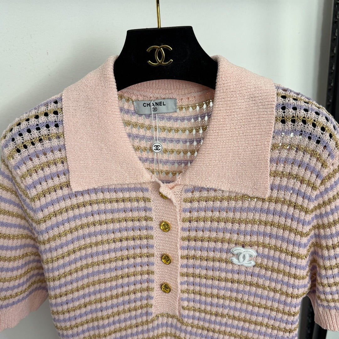 Striped Polo Neck Cutout T-Shirt