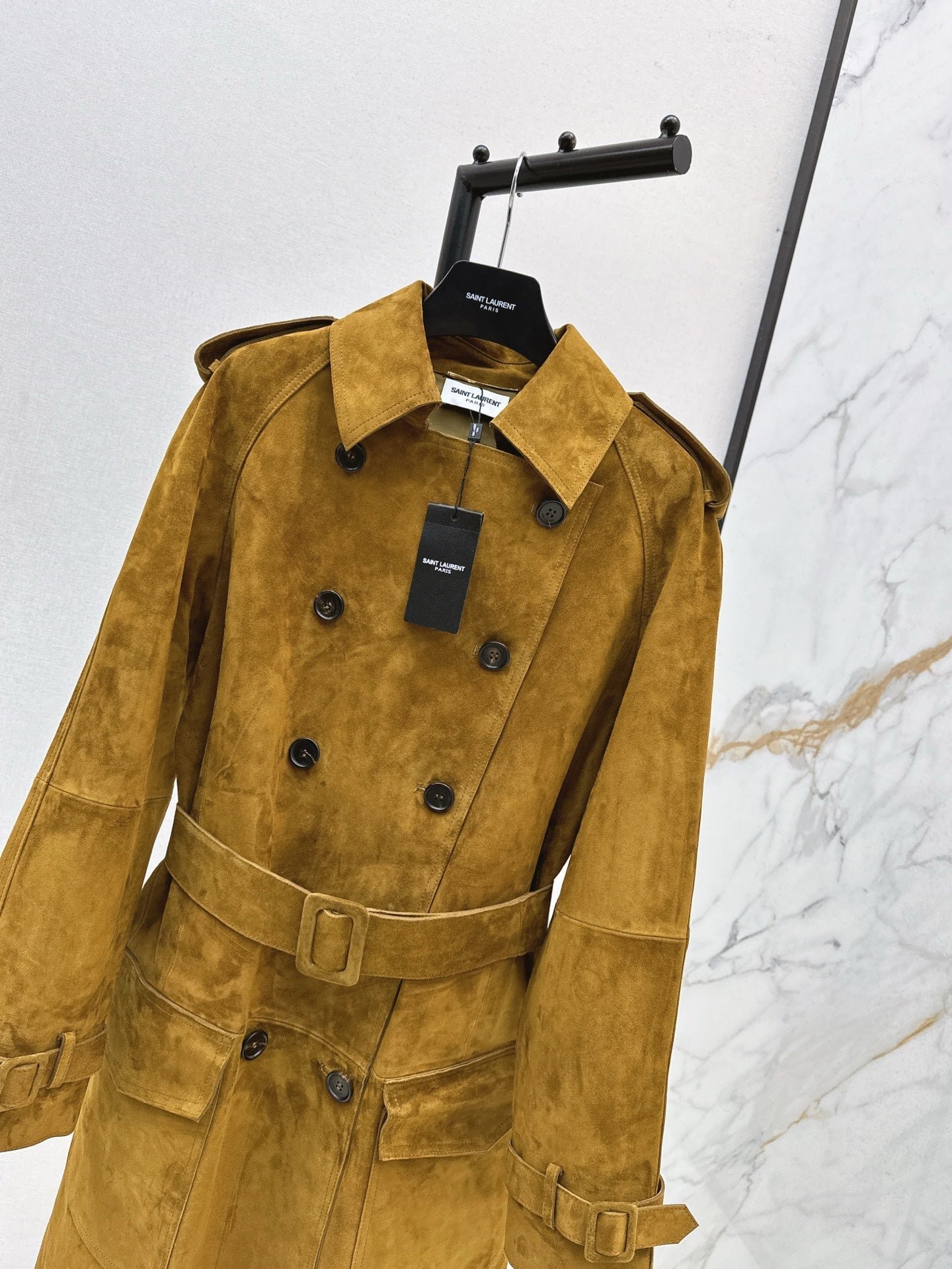 Suede sheepskin trench coat