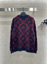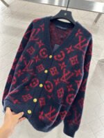Woolen yarn weaving, delicate texture, comfortable to wear, V-neck knitted cardigan cut, oversized loose silhouette for a boyfriend like look, with a four leaf clover logo throughout the body ➕ The letter jacquard distribution, combined with the edging outline, creates a collision. The red and blue color scheme is durable and versatile, paired with elastic fabric, making it more inclusive and slimming. The front button is decorated with engraved logos, showing the brand’s tone is more relaxed, and the upper body is fashionable and stylish