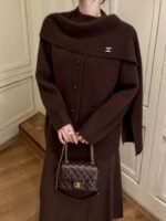 100% wool cardigan jacket, Xiaoxiang Korean sweater, scarf integrated design, cape style, simple and atmospheric, super versatile