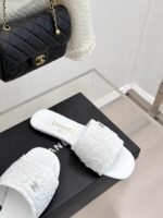 The upper is made of original custom materials. The inner lining and insole are both sheepskin. The outsole is made of imported Italian cowhide. When the double C logo meets rhinestones and woven elements—the delicate silk upper flows like moonlight. Even walking on the floor feels like walking on a red carpet.