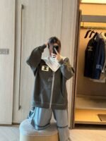 The loose fit is comfortable and flattering, concealing any unwanted curves. The front zipper makes it easy to put on and take off, and the collar is adjustable. The hood adds a casual touch and pairs easily with various bottoms for a relaxed yet energetic everyday look.