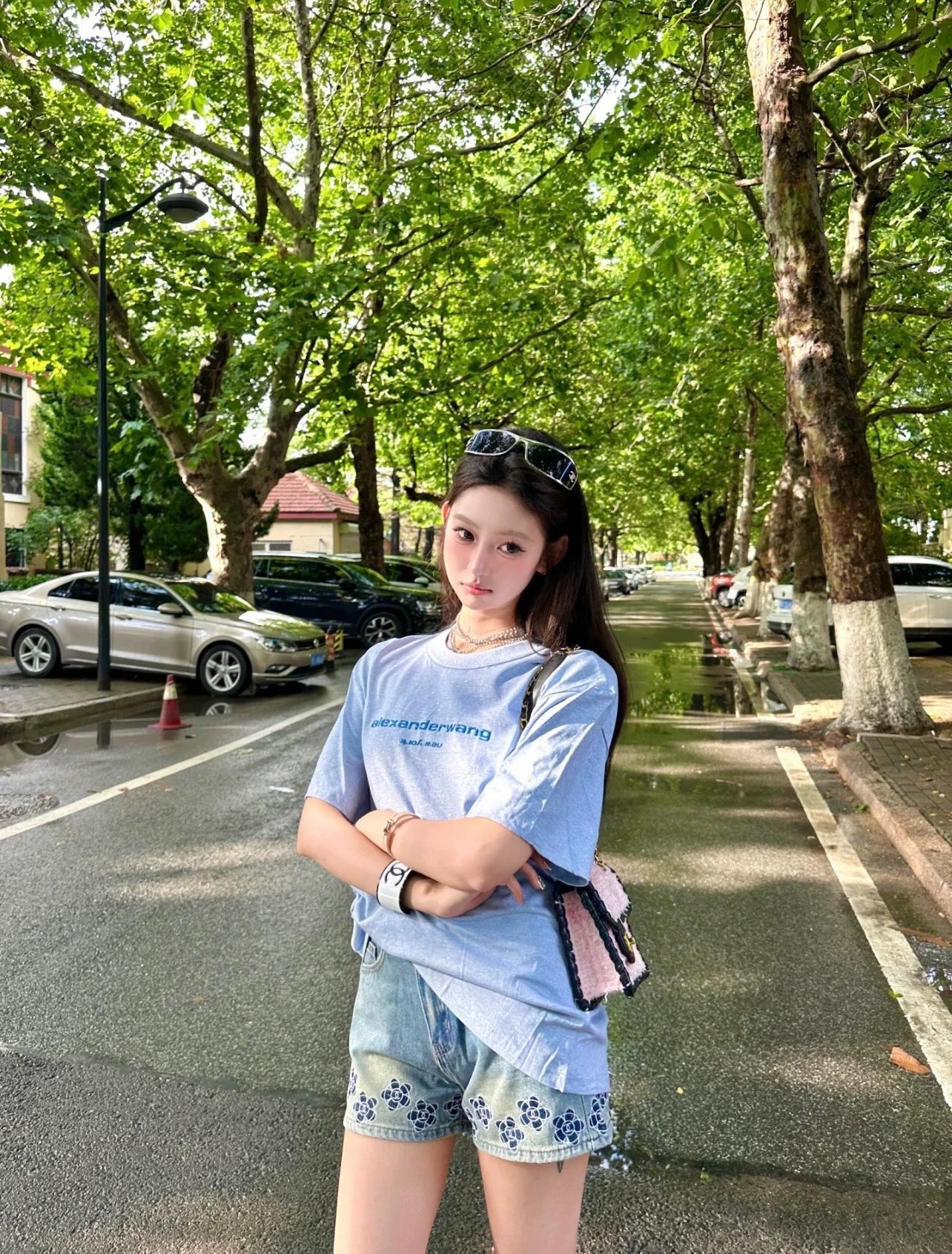 25 Summer Embroidered Camellia Craft Denim Shorts