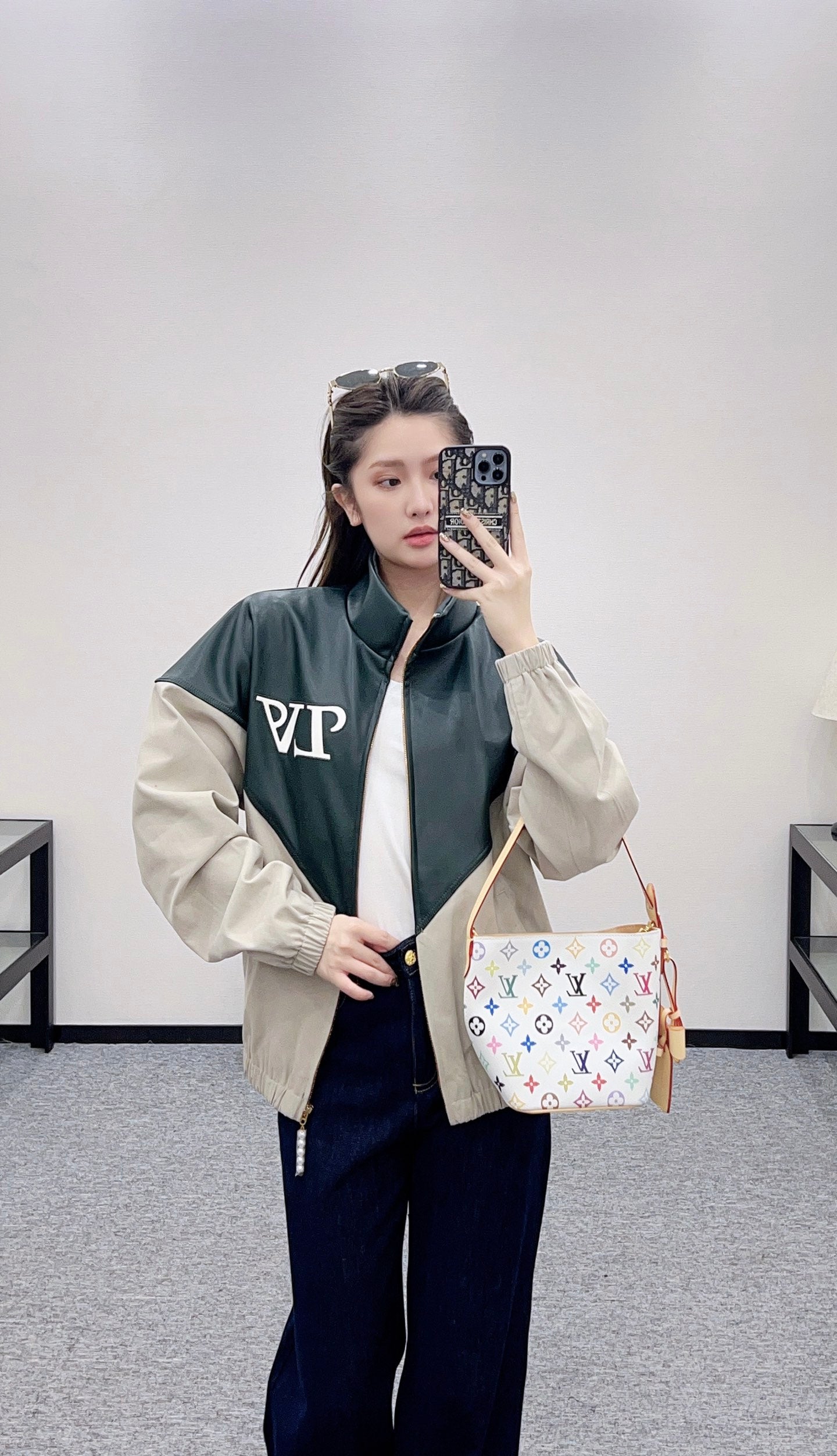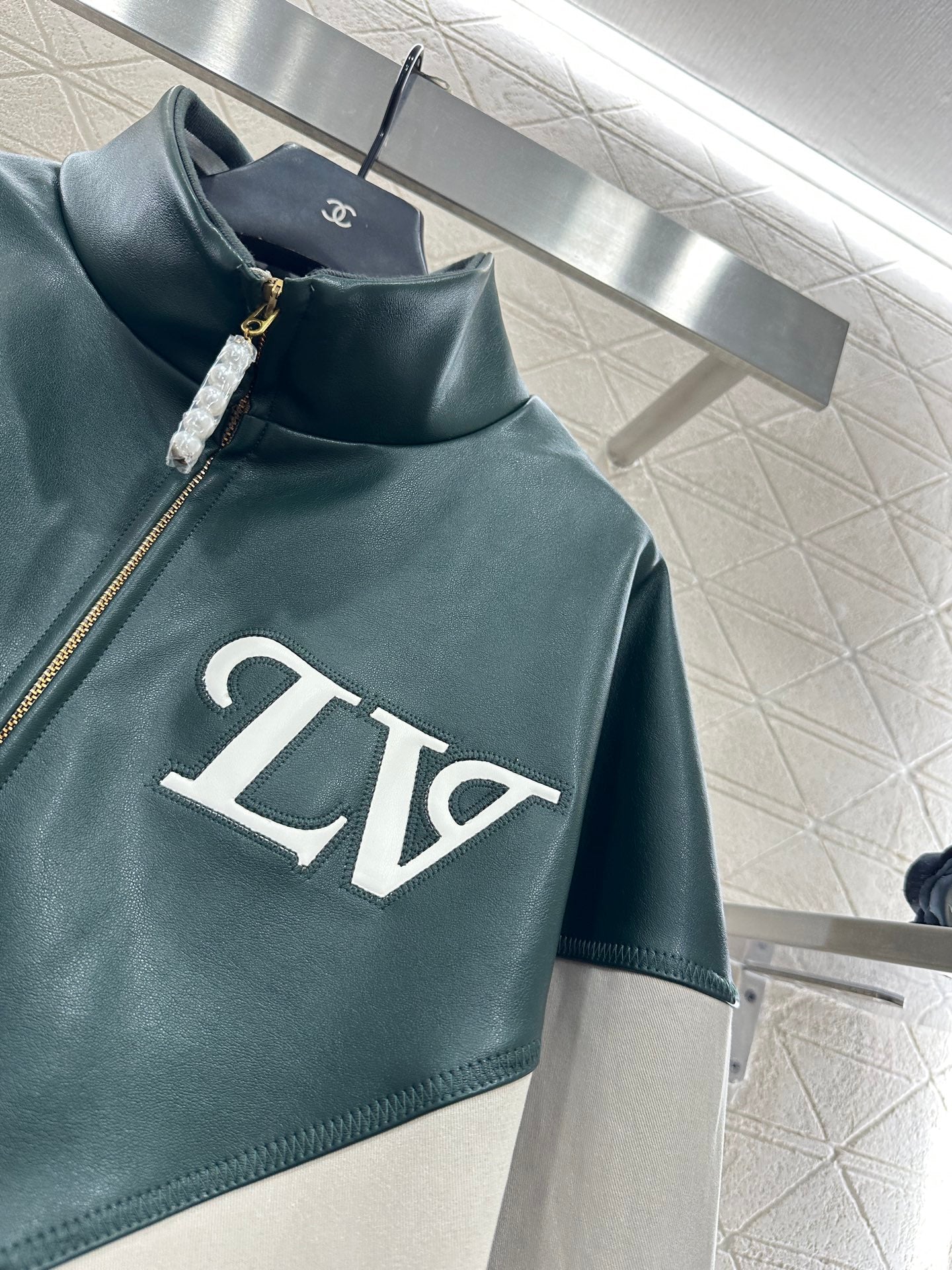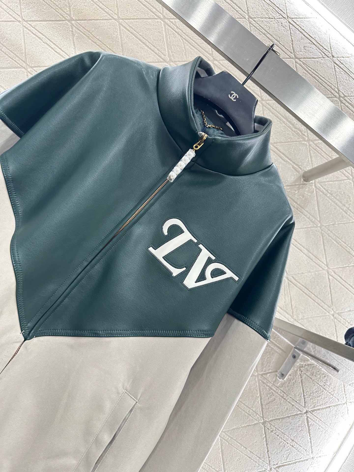 Imported environmentally friendly washed leather material, delicate texture, clear grain, lapel loose silhouette jacket version, with silky zipper, classic metal texture makes the handsome motorcycle feel full, top and bottom two-color splicing, outline presents V shape, echoing the chest letter logo, the upper body is cool and slimming, the inner lining print + back collar slogan show style, a must-have for sweet and cool girls.