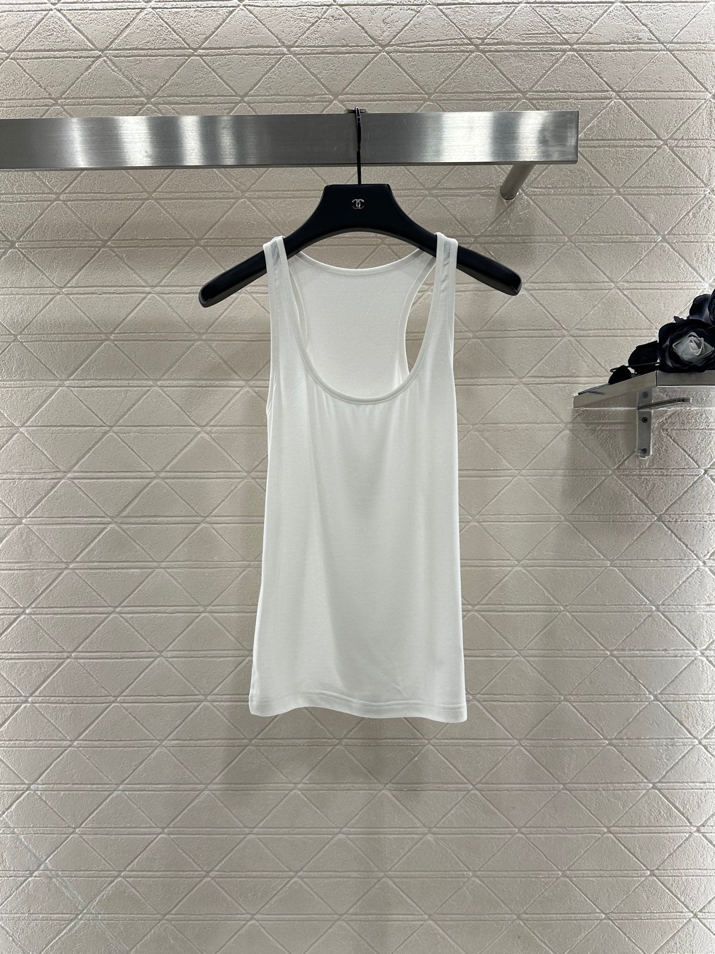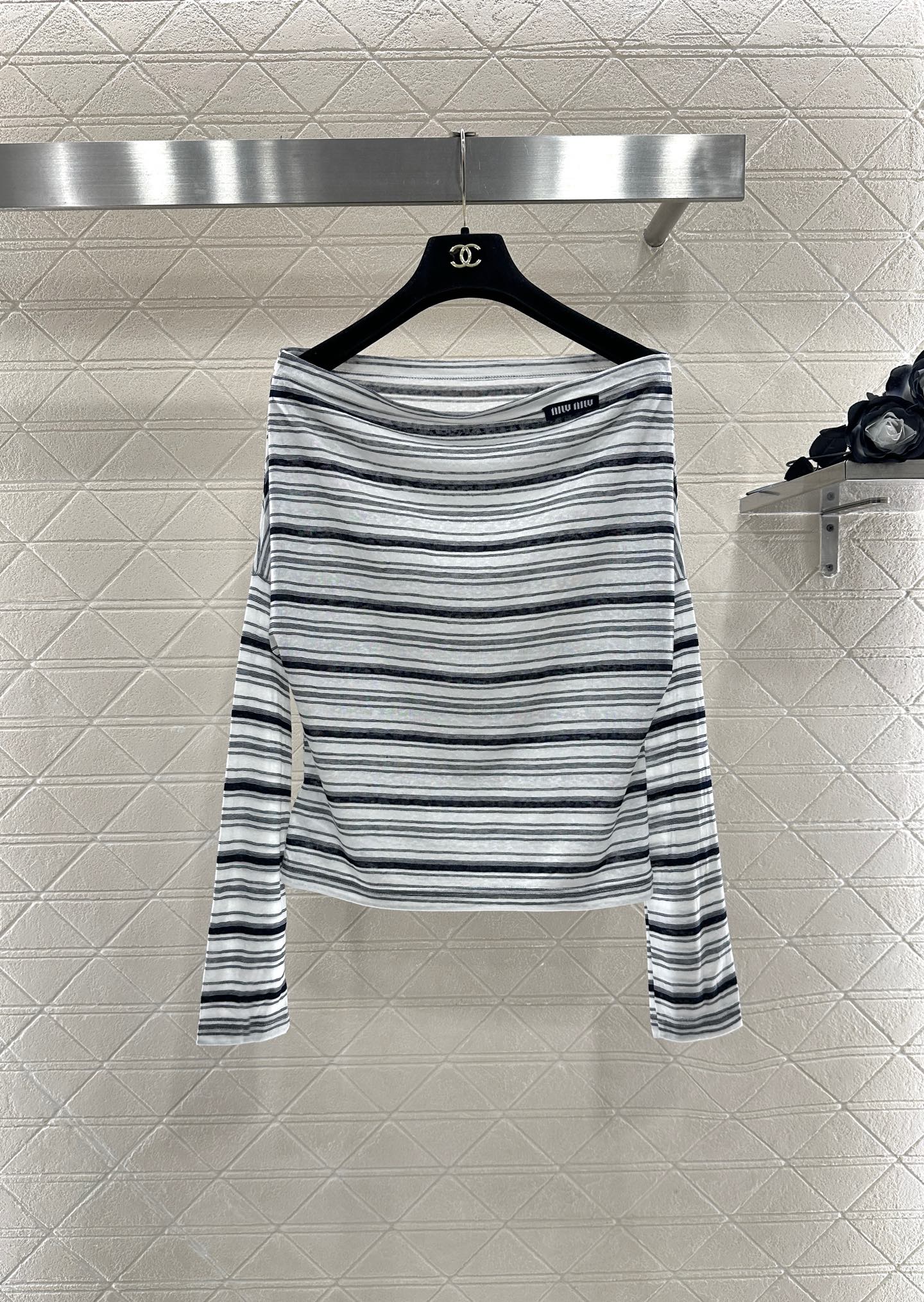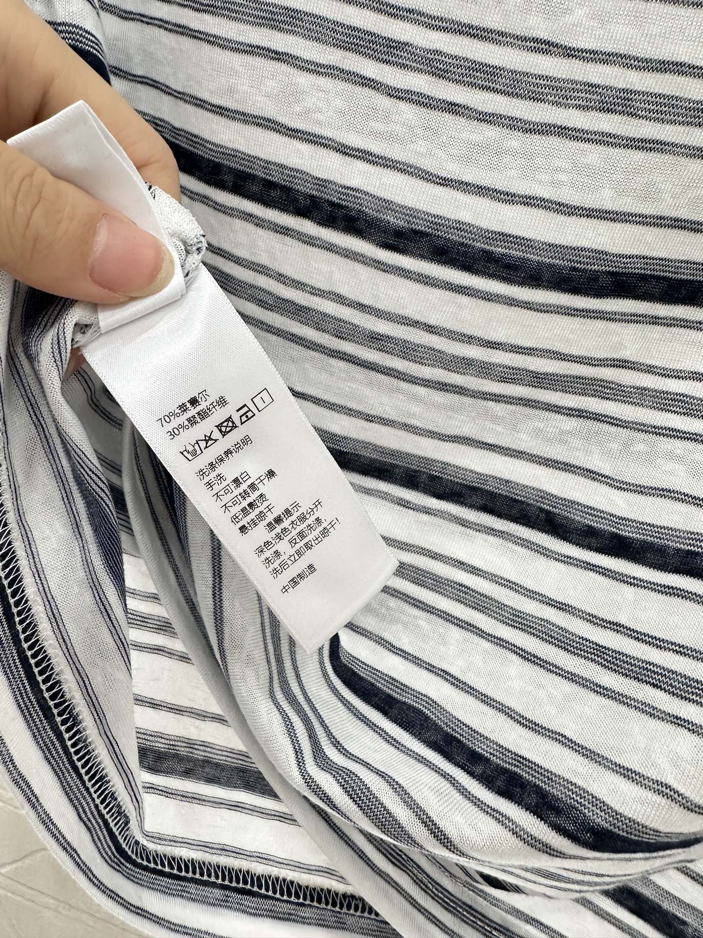 Texture glossy and elastic flat cut round neck long sleeved top ➕ Tank top two-piece set with alternating and versatile stripes of varying thickness, durable and eye-catching. One side of the collar features a signature letter logo decoration to break free from boredom and monotony. The interior is paired with a basic solid color I-shaped tank top, which exposes the collarbone and neck for a more layered and inclusive look
