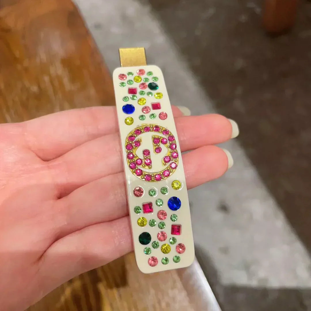 25 new Acetate duckbill clip with colored diamonds and rhinestone letters