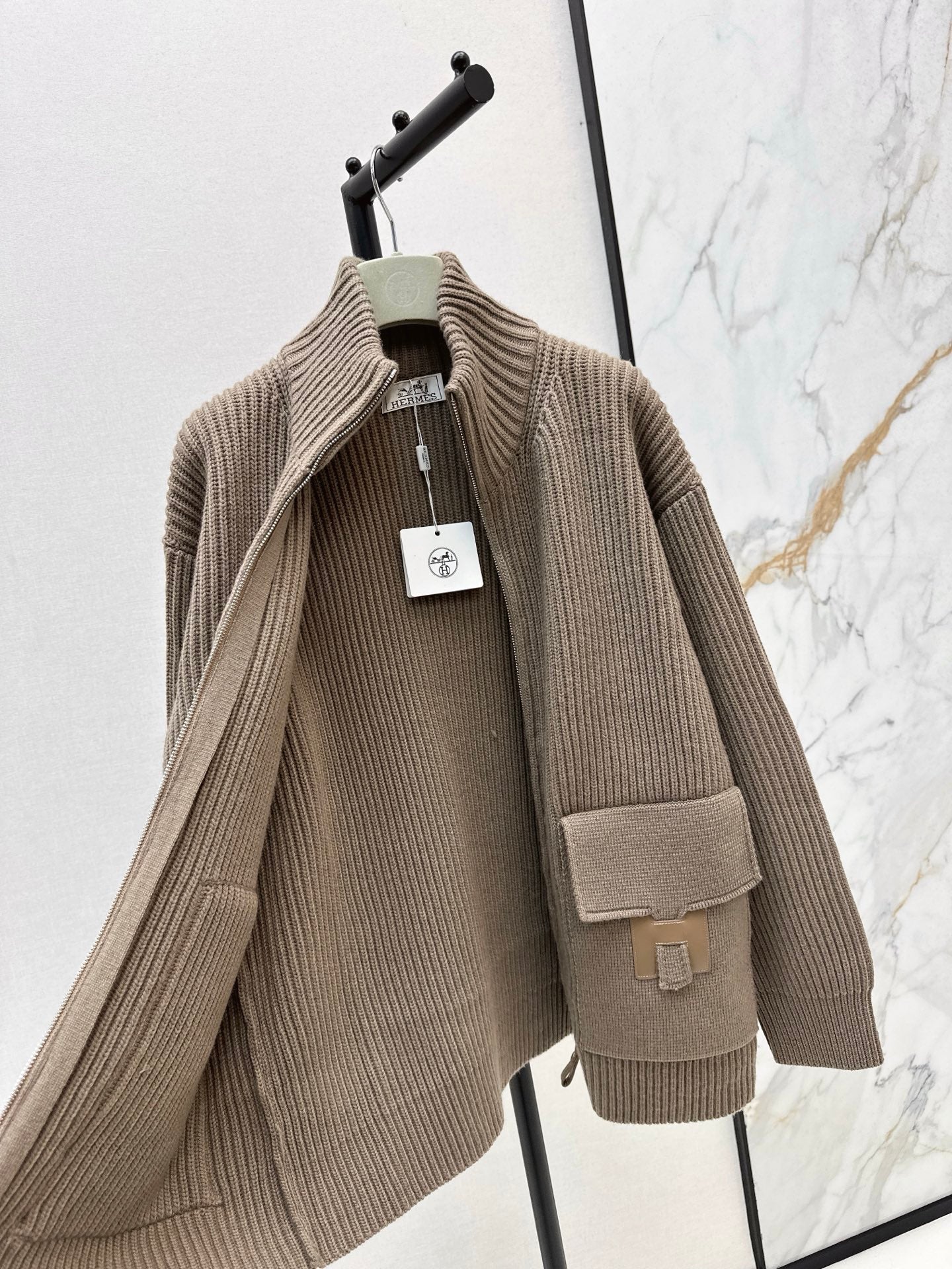 25 New Classic H-Pattern Decorative Pocket Wool Knitted Cardigan(GRAY/RED)
