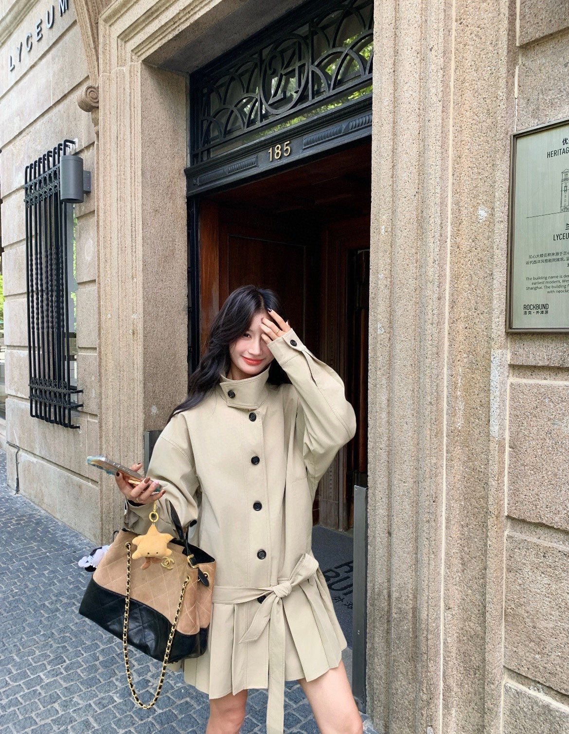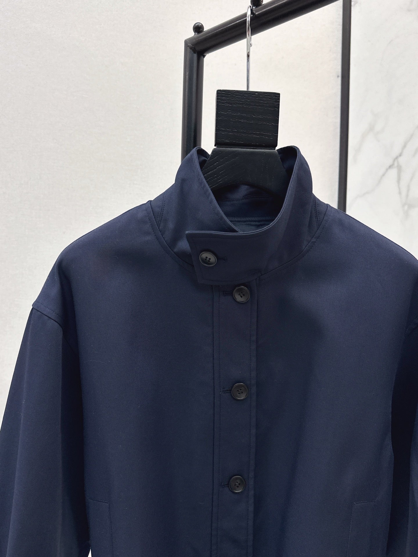 25 New wide shoulder silhouette stand up collar pleated windbreaker jacket(KHAKI/NAVY)