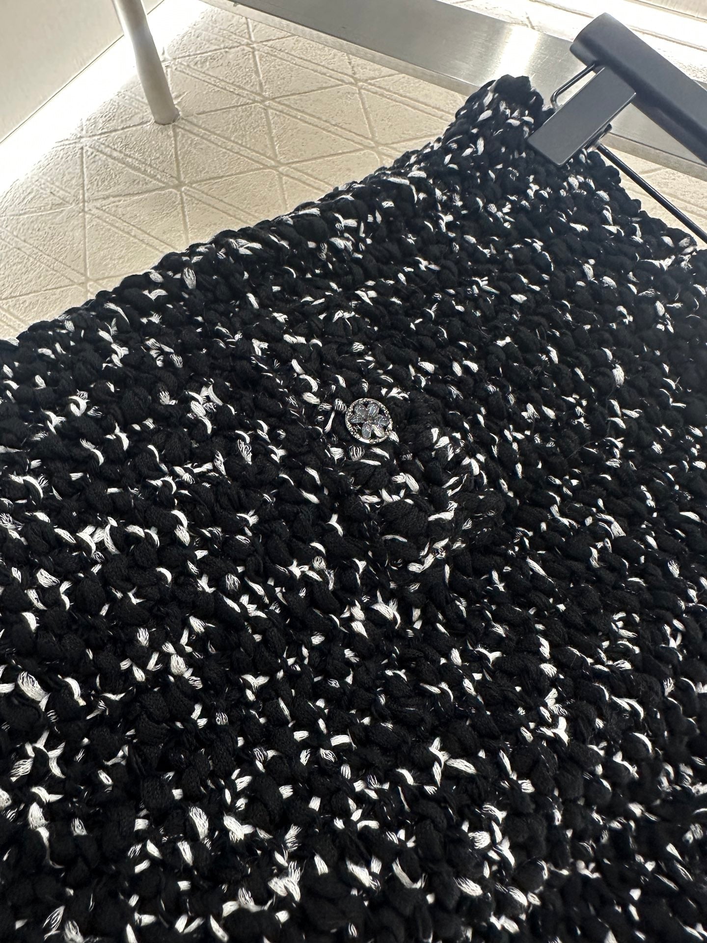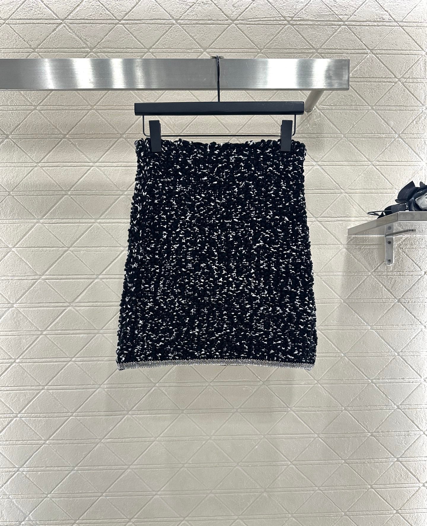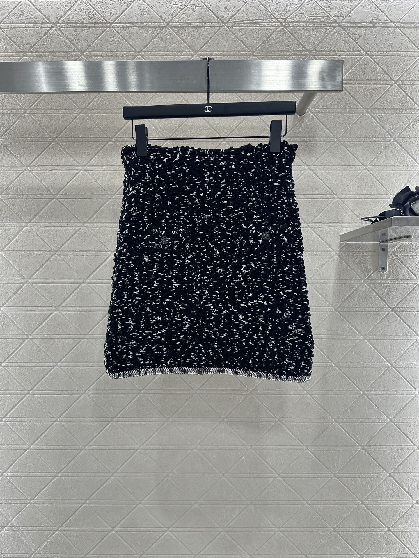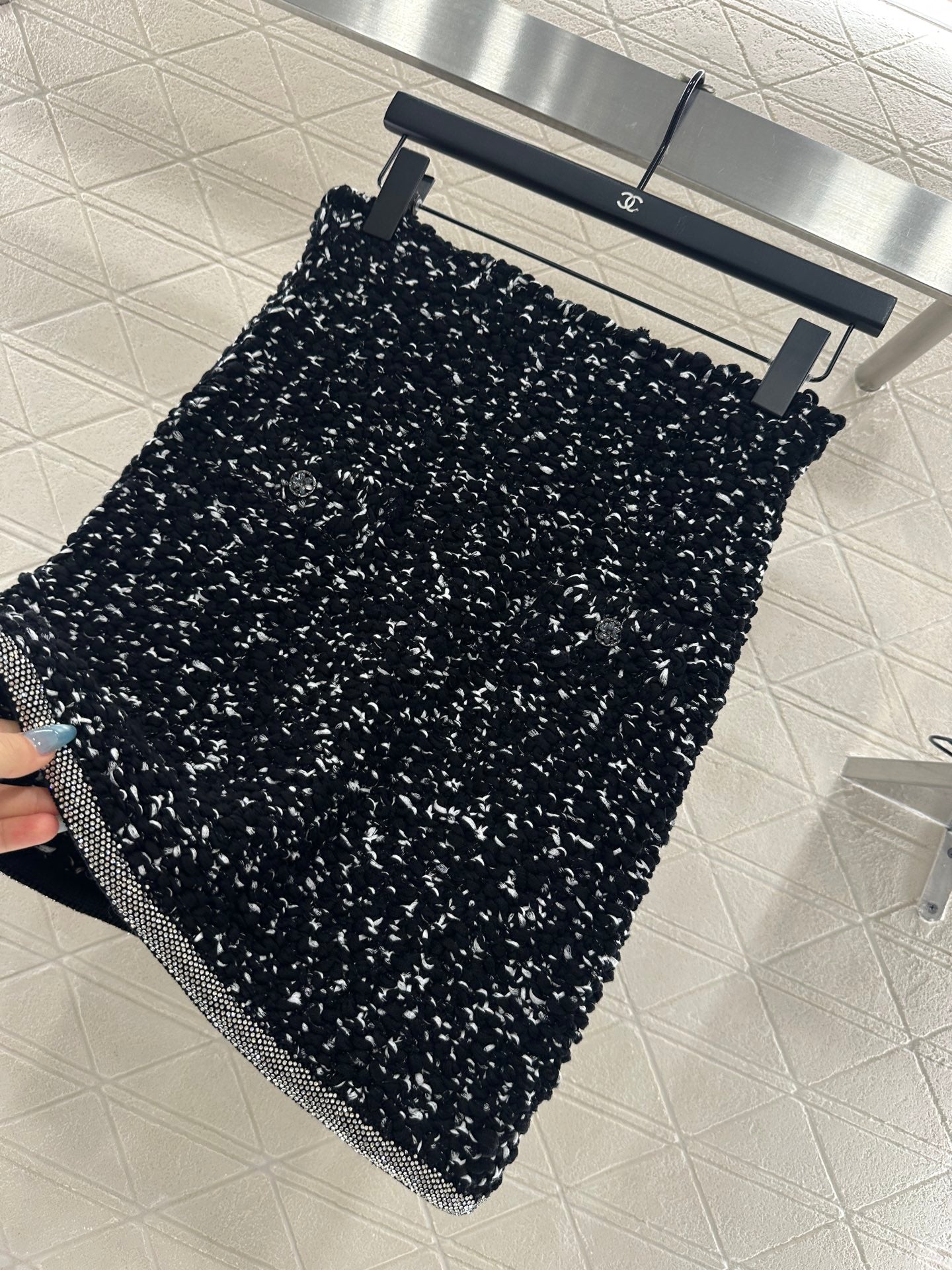 Cotton yarn weaving, comfortable to wear, soft and delicate. Round neck knitted cardigan paired with half skirt set, embellished with rhinestone tied edges ➕ Pocket camellia placket design, double gorgeous to showcase brand tone. The finished garment is woven with a dense texture and crochet, with solid colors combined with wavy hair particles. The black and white contrasting colors are durable and gentle. Paired with a hip hugging straight tube short skirt of the same series, it accommodates the body shape and improves the proportion. The water diamond edge of the skirt echoes, showcasing a retro style temperament and adding an elegant touch to the upper body. The exquisite and stylish feeling is fully displayed, suitable for both dating and commuting