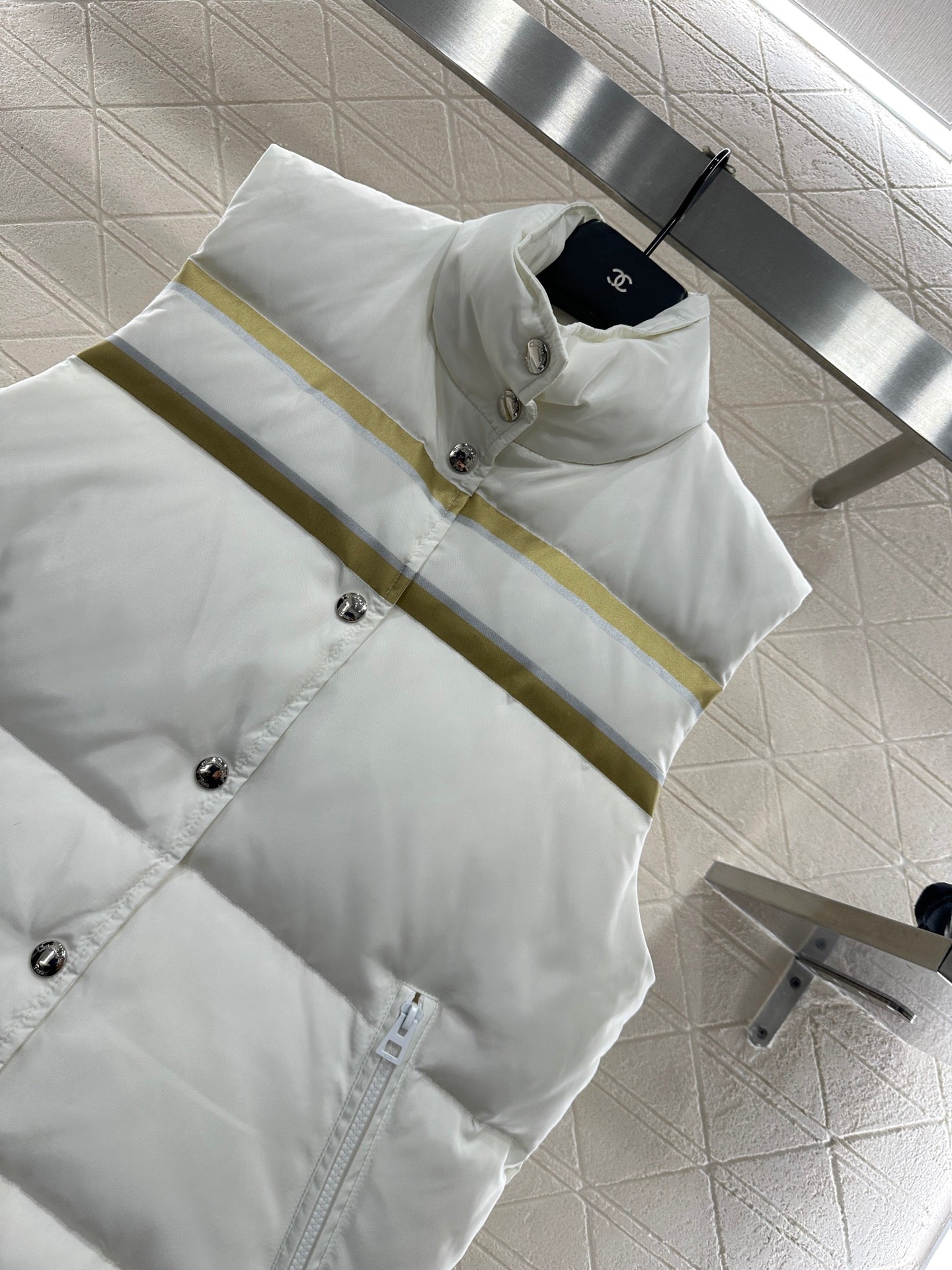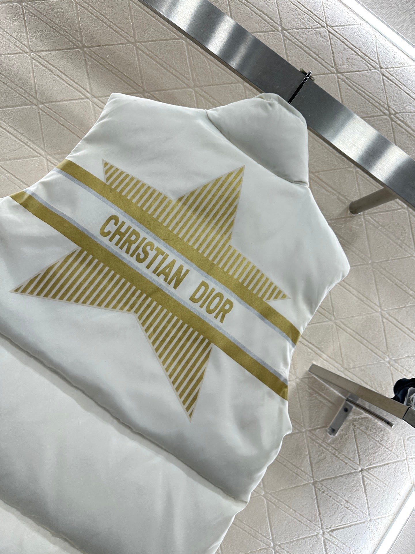 Windproof and waterproof nylon material, filled with down lining, the whole piece is lightweight and warm, with a stand up collar, zipper, and fashionable down vest, which is warm without appearing bulky and has stronger wearability. Rectangular embossed treatment, horizontal stripes on the front chest for high-end taste, and a five pointed star logo print on the back to showcase the brand's style. It combines warmth and fashion, breaking away from the traditional down routine. It is the first choice for autumn and winter layering