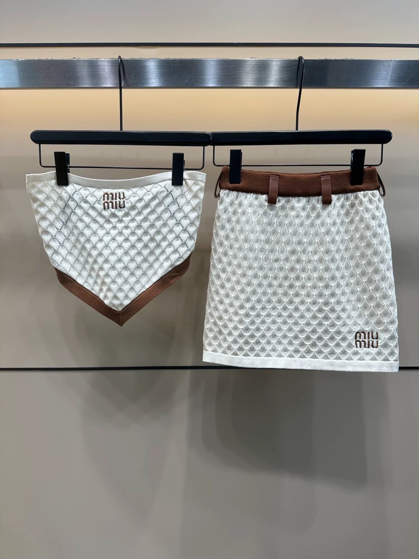 25 Summer new style dark pattern diamond tube top + skirt suit