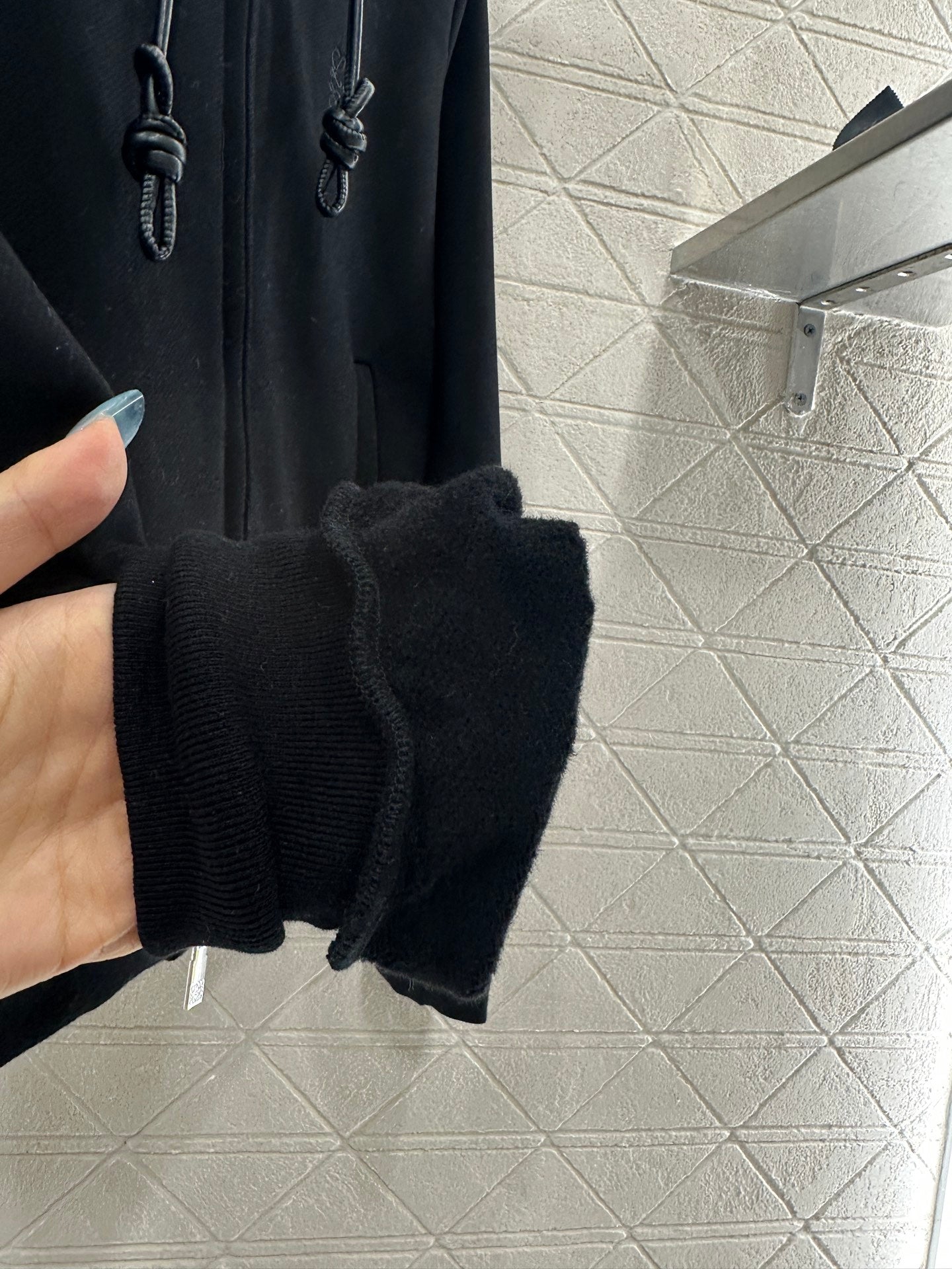 Made of all cotton material, with a glossy texture and a high-end appearance, this versatile hooded jacket features a brushed and plush lining for warmth and comfort. The zipper opening is adjustable, giving it a casual feel. The large capacity pocket is paired with a knot leather drawstring design, creating a relaxed street vibe. The chest is embellished with totem embroidery patterns, highlighting the brand's tone. The outfit is stylish, simple yet fashionable