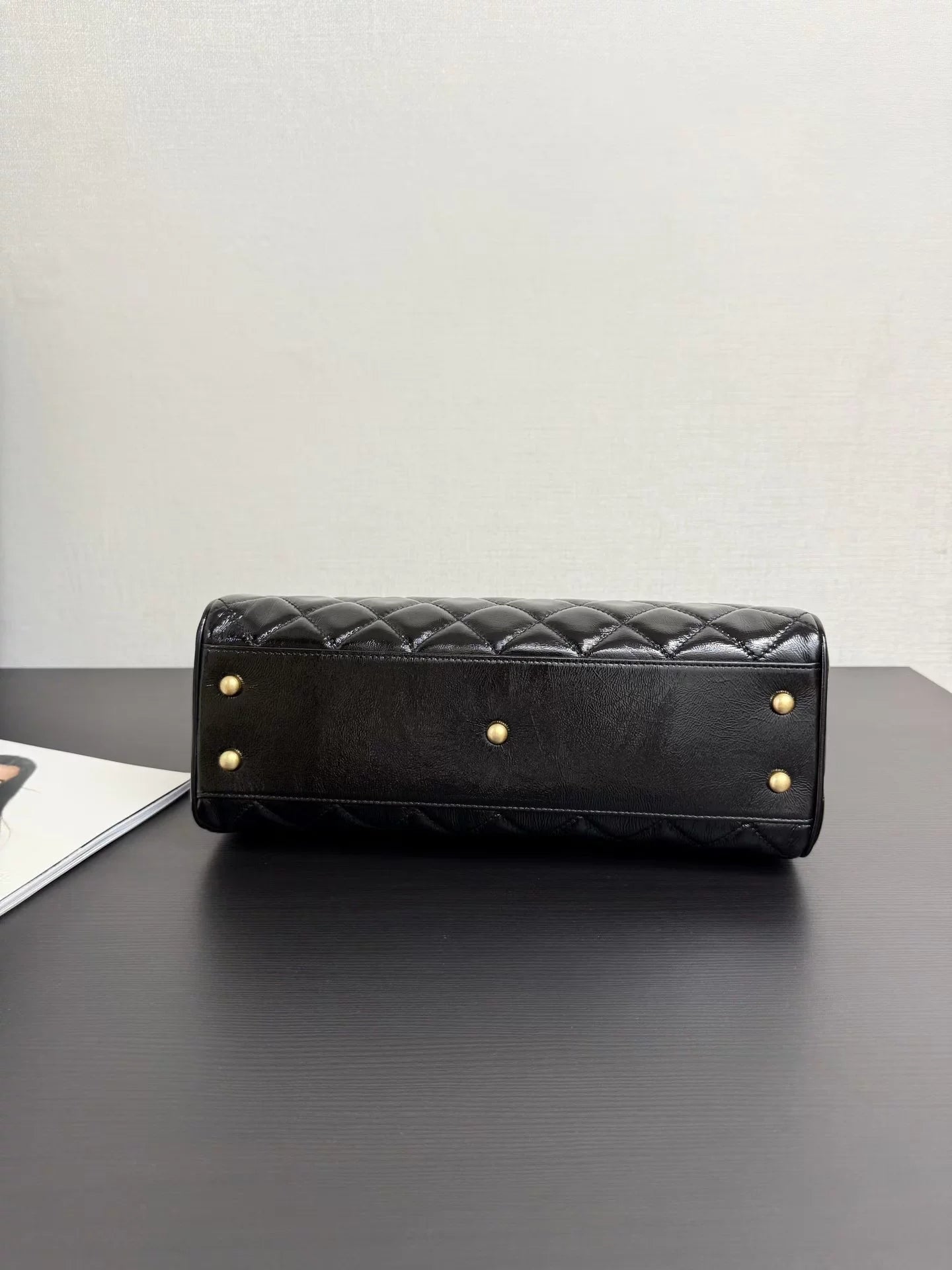 Classic diamond grid pattern, black with gold hardware, premium texture, versatile and practical!
