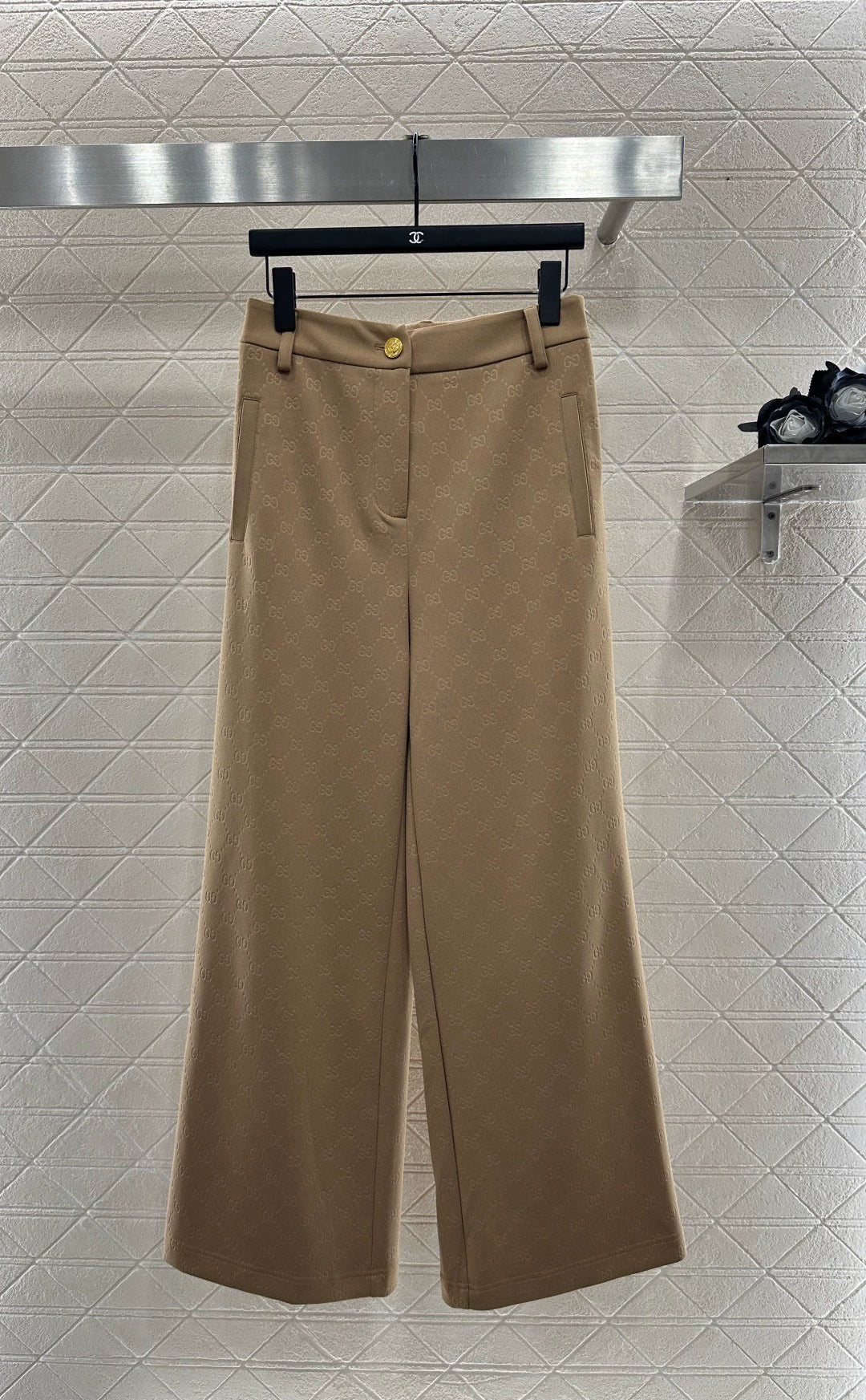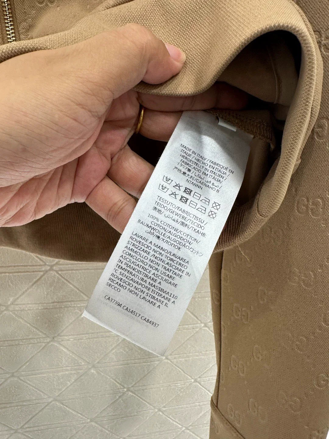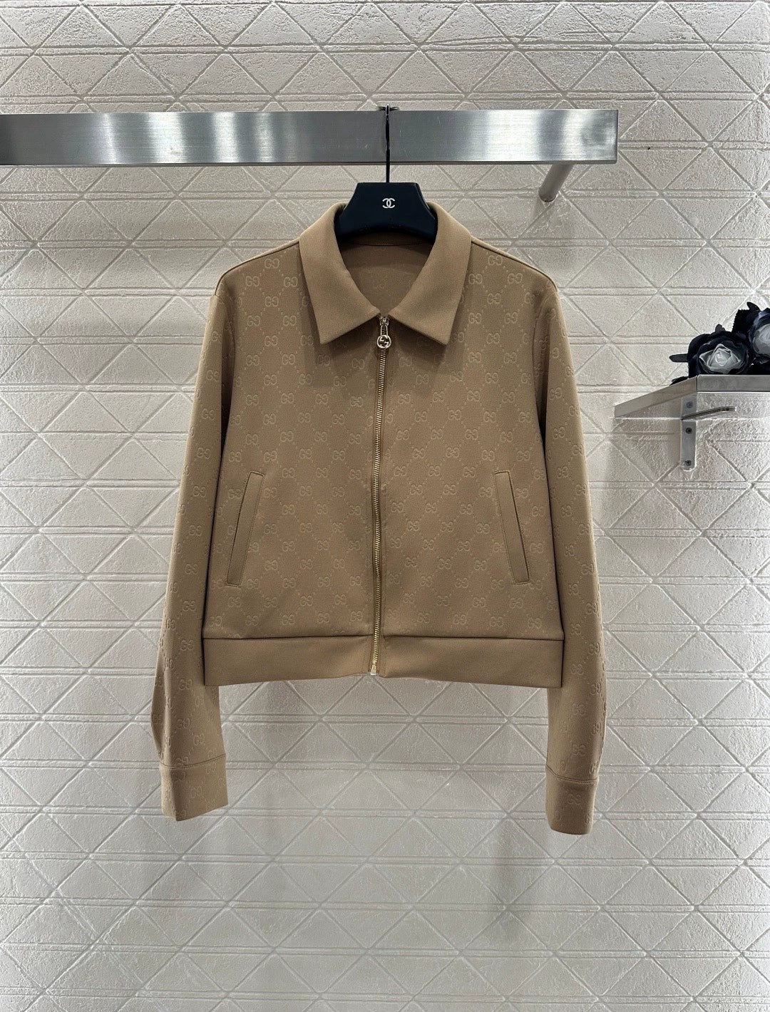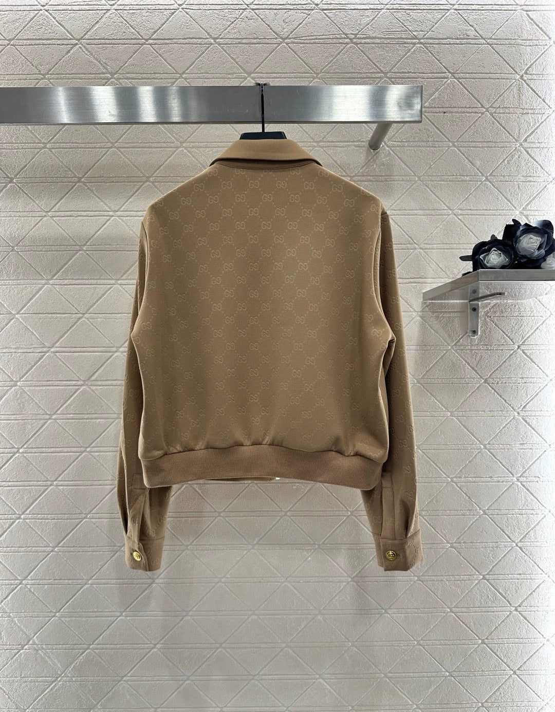 The twill cotton material is comfortable and easy to wear, with a stylish lapel zipper jacket cut and a zipper opening design that can be adjusted freely. The entire body is covered with a three-dimensional textured double G brand letter logo, which low-key highlights the brand's personality charm. The chain buckle hollow letter decoration is more textured. Paired with wide leg straight leg long pants of the same series, it is comfortable and fashionable to wear