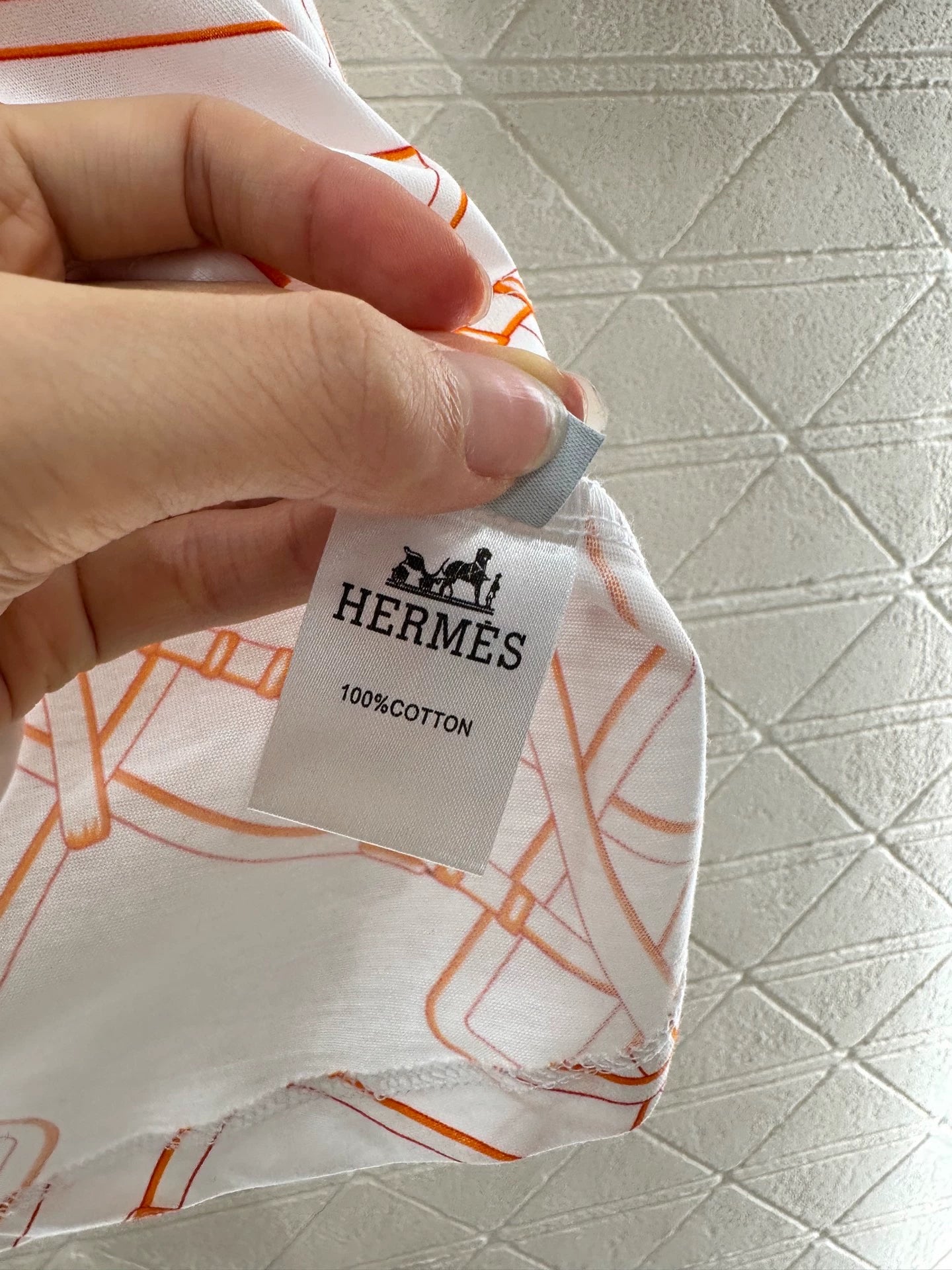 Breathable and comfortable with a strong texture, the regular short sleeved T-shirt is tailored to highlight the brand style. It is made of heavy-duty pure cotton with slight elasticity, presenting a slimming visual effect. The whole body is decorated with orange red chain buckle and printed patterns, which are staggered and irregularly distributed, making it more personalized and fashionable. The brand's own simple and fashionable sense is immediately evident