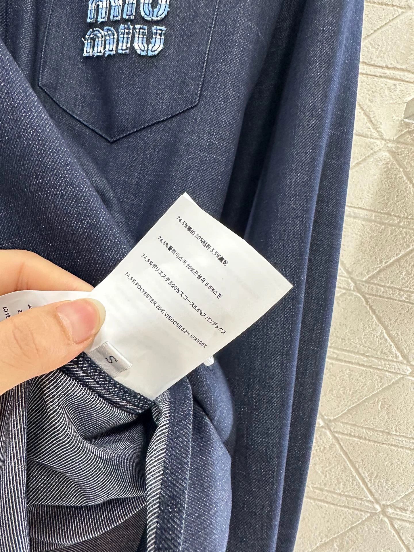 The texture is smooth and comfortable to wear, with a front shoulder lapel shirt and a large retro deep blue silhouette. The loose feeling is full of top decoration. The figure is elegant and exquisite. The pointed collar is matched with blue and white checkered shirt fabric splicing decoration, which echoes the cuffs and waistband to enhance the artistic texture. The cutting details are highlighted by the letter logo, highlighting the brand texture. It is matched with the same series of wide leg drawstring straight leg pants to decorate the leg lines. It is a fashionable and stylish outfit