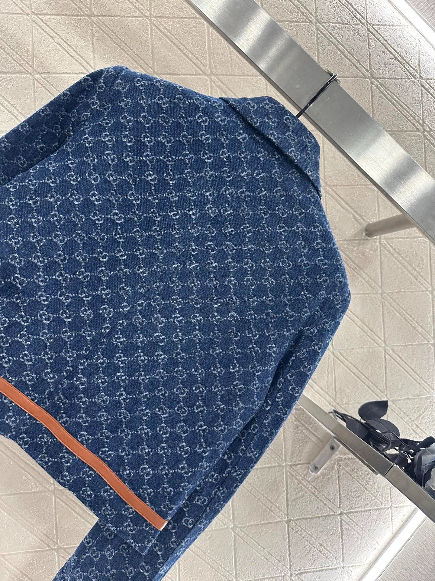Jacquard material, premium texture, crisp and stylish, collar and shoulder jacket silhouette, front placket engraved with boat anchor ⚓ ️ Buckle, short cut for a slimming and stylish look, full body double G jacquard print ➕ The buckle details on the two waisted side of the horse are understated and luxurious overall. Full range details echo the brand's style, showcasing the elegance of a knowledgeable old man