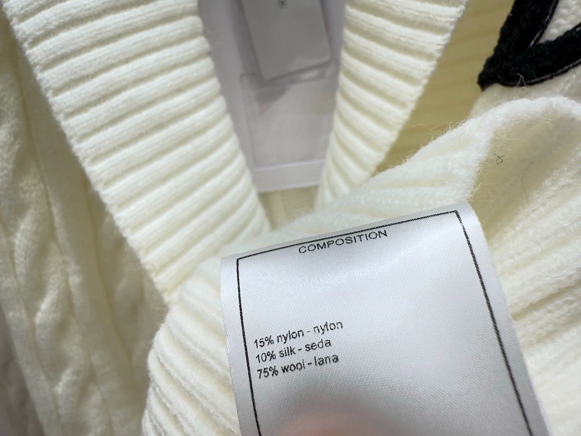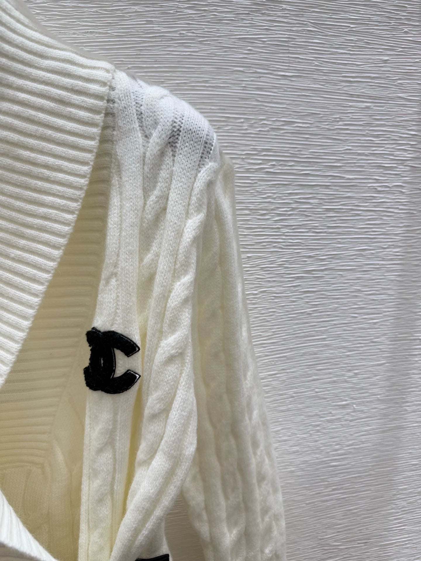 The fabric is made of 75% wool, 10% silk, and 15% nylon, which is soft and comfortable. The classic Fried Dough Twists knitting process is matched with the waist buckle design. The black version matches the white double C logo, and the white version matches the black double C logo, which is simple and elegant.