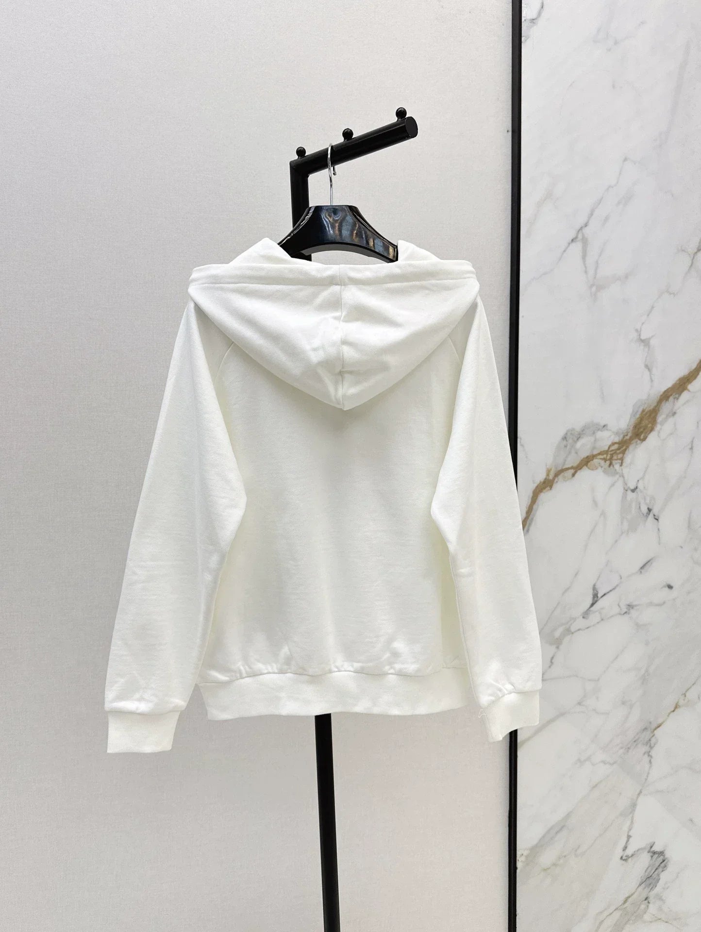 House with playful patterns of clouds and letter logo, classic pocket style, super cool original imported pure cotton hoodie fabric, excellent texture, positioning printing logo, fashionable and high-end