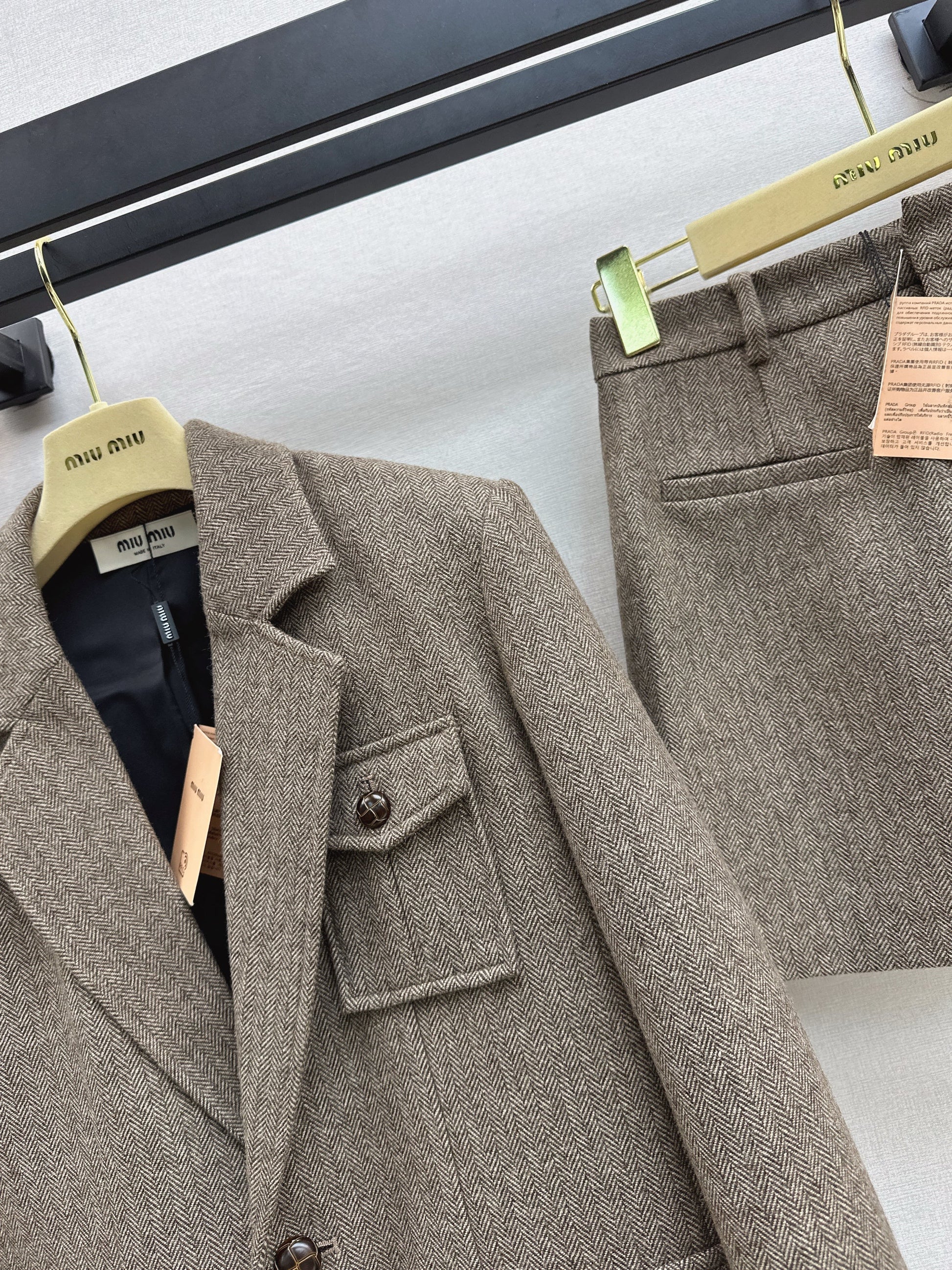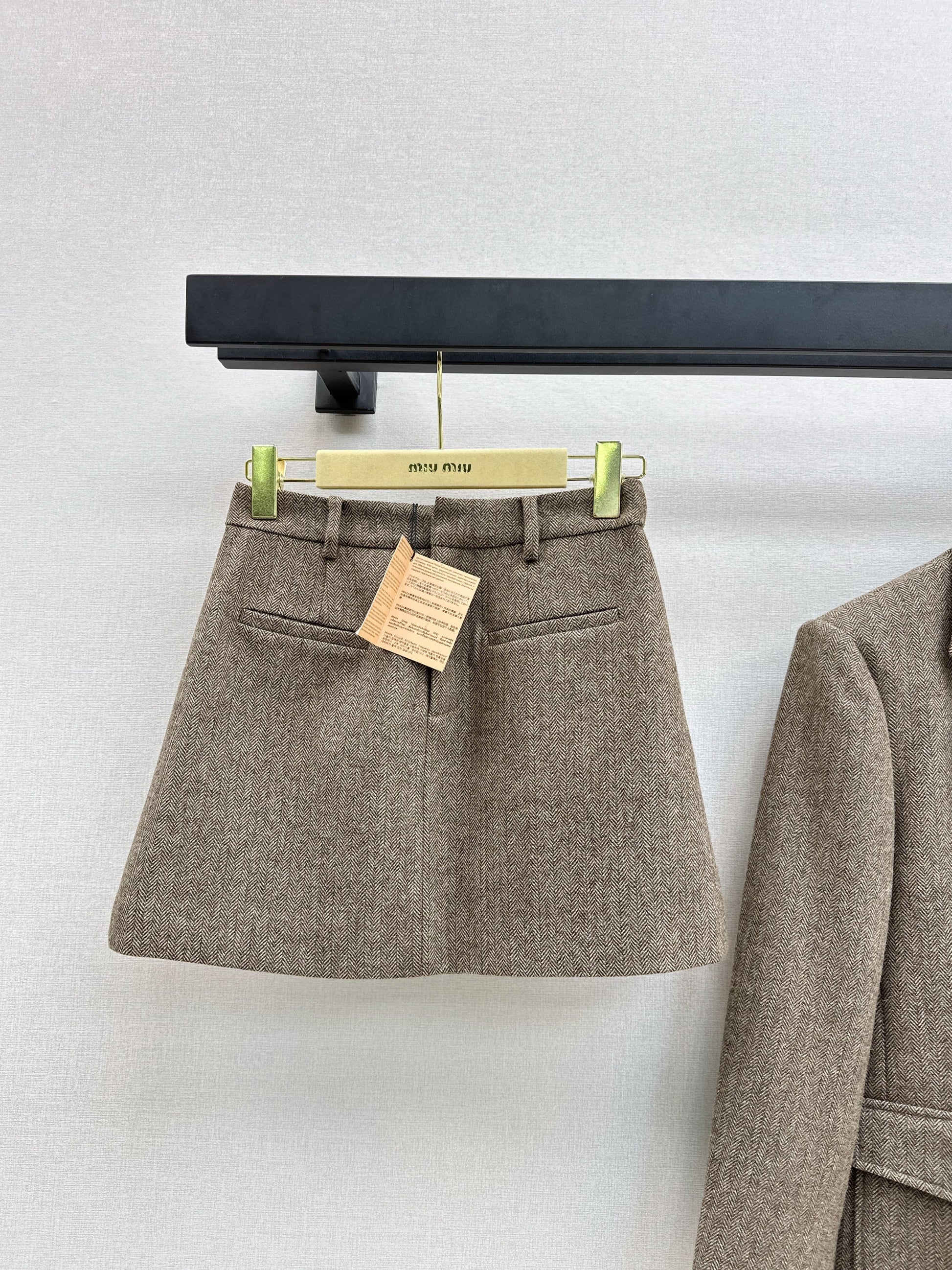 A set of three pocket decorative suit jacket and A-line half skirt that exudes a super stylish look, easily achieving the most in fashion sense. The upper body exudes a sense of luxury and is full of height enhancing artifacts. The pleated hips and waist are folded to show off the length of the legs, and they look equally good when worn separately