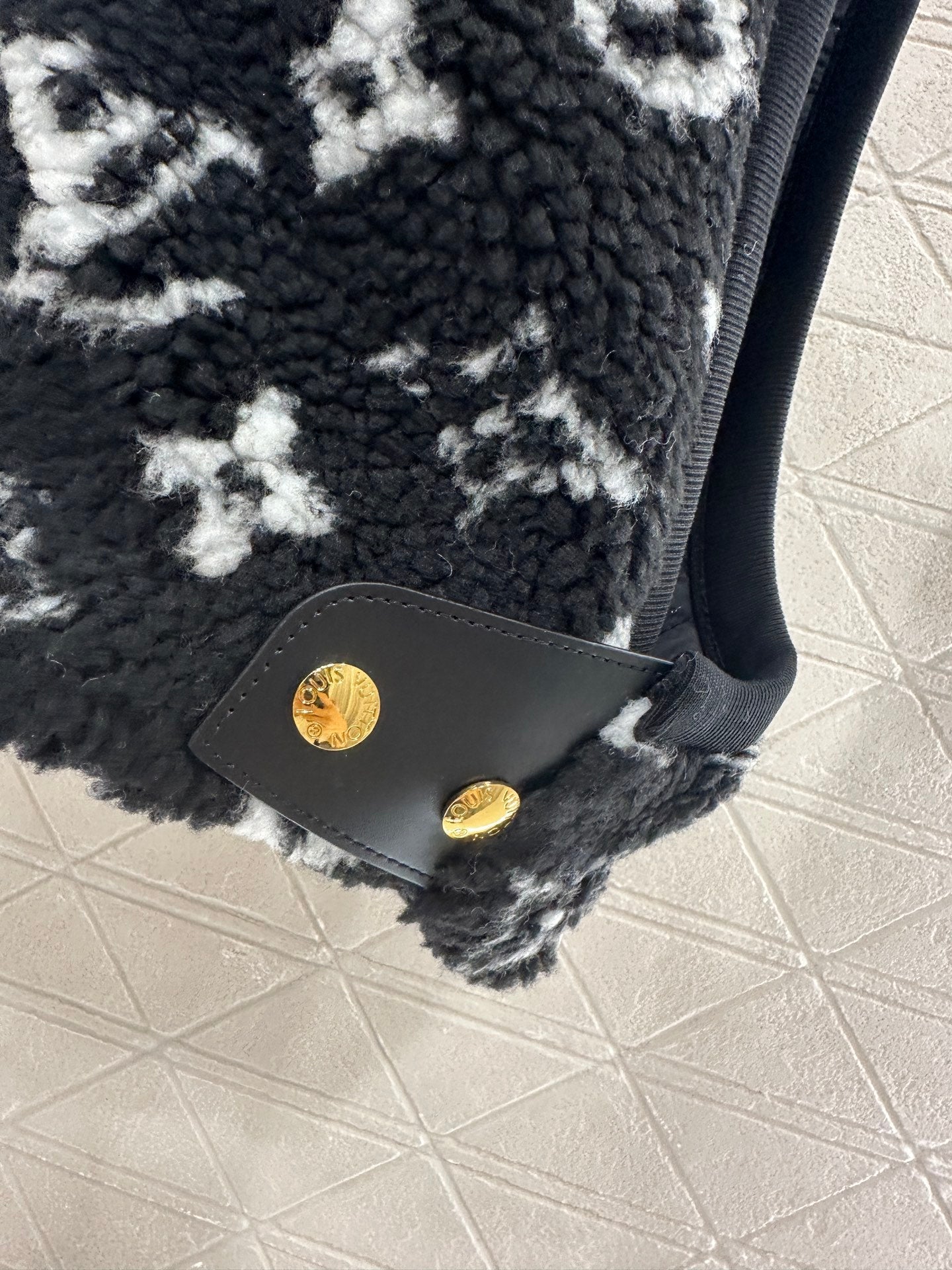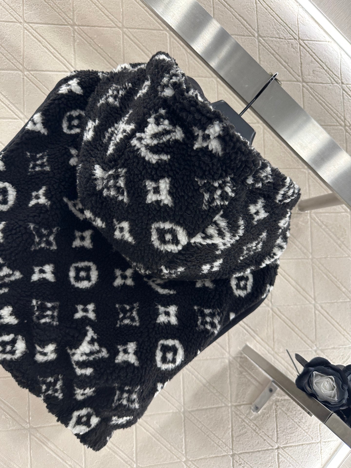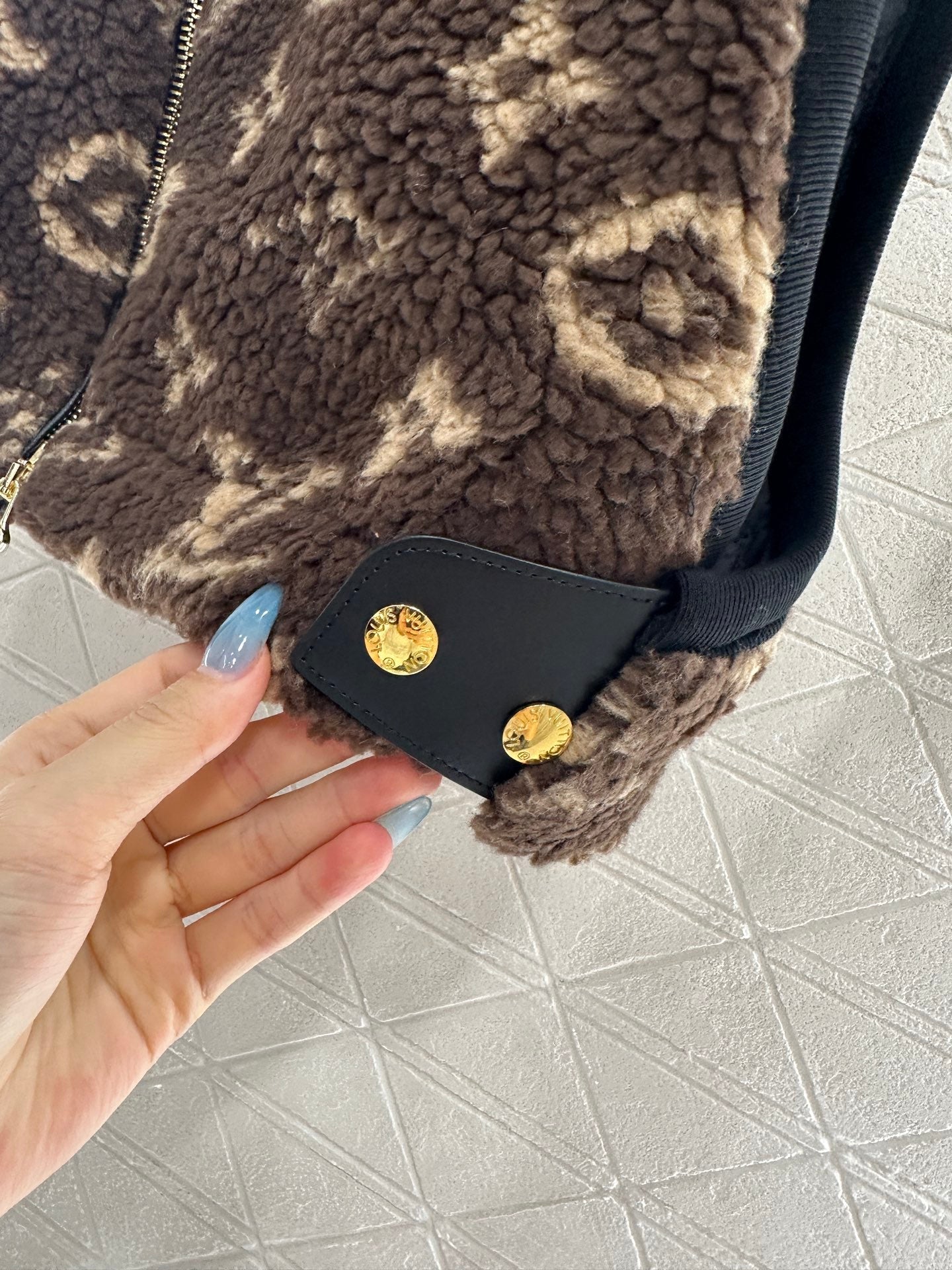 Made of fleece material, the texture is noticeably soft and skin friendly, adding a touch of fashion and color. The hooded zipper vest is designed with a large body of Teddy cashmere wool printed with four leaf clover elements and letter logos, highlighting the brand's low-key luxury tone. The zipper is adjustable with slit design, and the iconic leather buckles on both sides of the waist are fixed with a fashionable style, making it easy to handle both daily travel and leisure time.