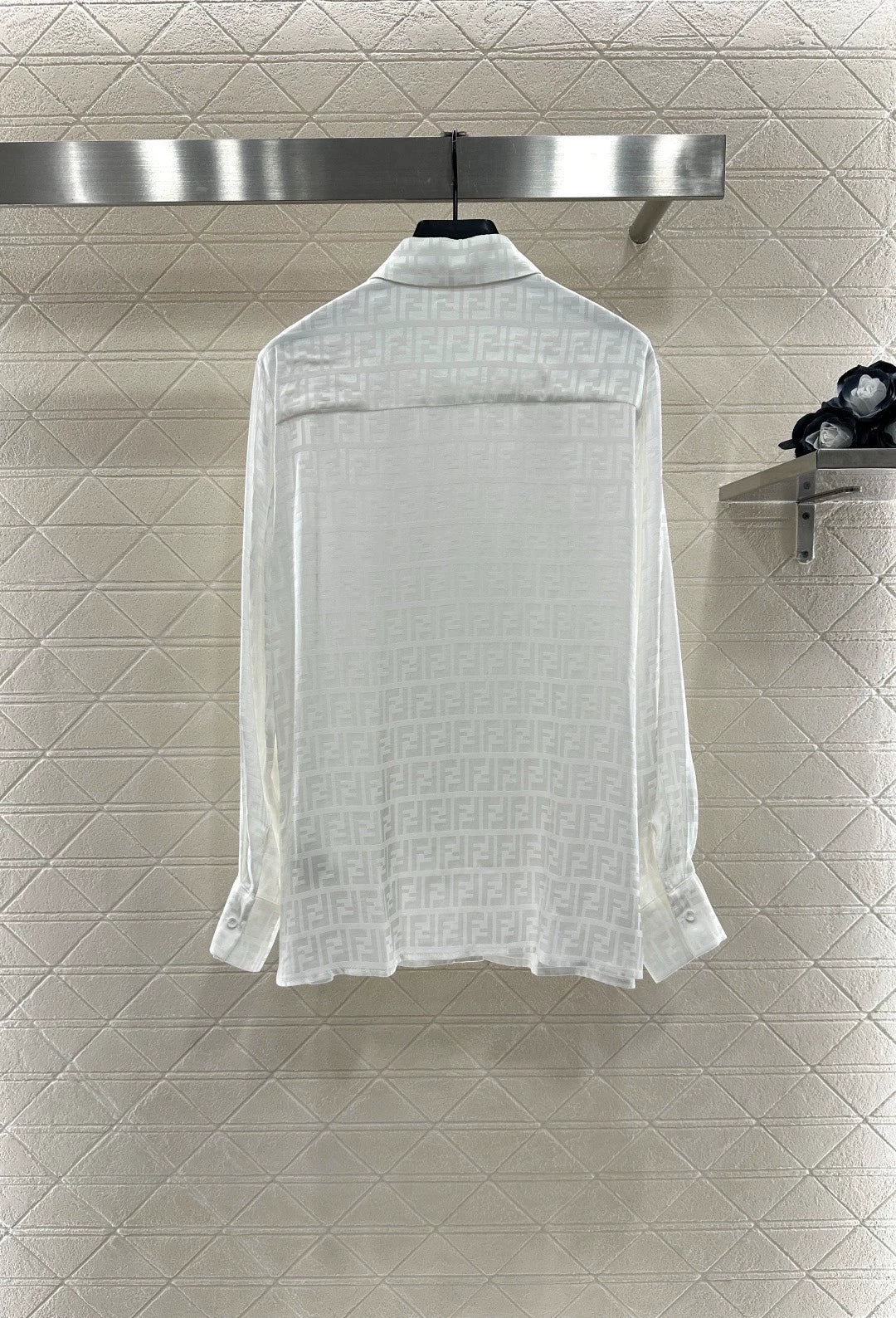 Jacquard material texture glossy comfortable breathable lapel shirt cut full body with double F brand logo jacquard old money feeling full of classic color matching, relaxed cutting easy to wear high-end style, more stylish and fashionable upper body, paired with the same series of mid length skirt umbrella shaped skirt, more elegant and flowing