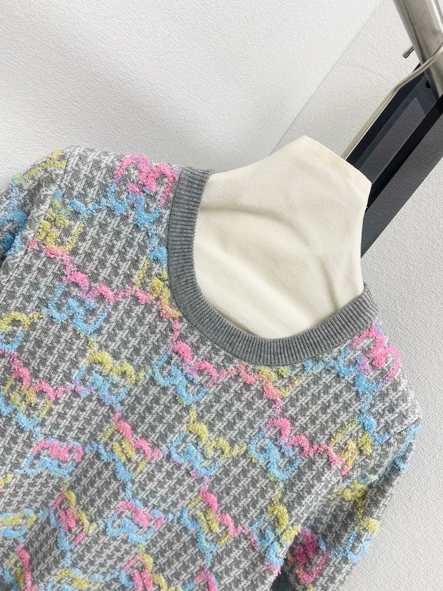 Round neck design, short sleeved style, suitable for wearing in spring and autumn seasons. The fabric adopts jacquard technology, and the logo is three-dimensional and full, which is very versatile to match with skirts or pants