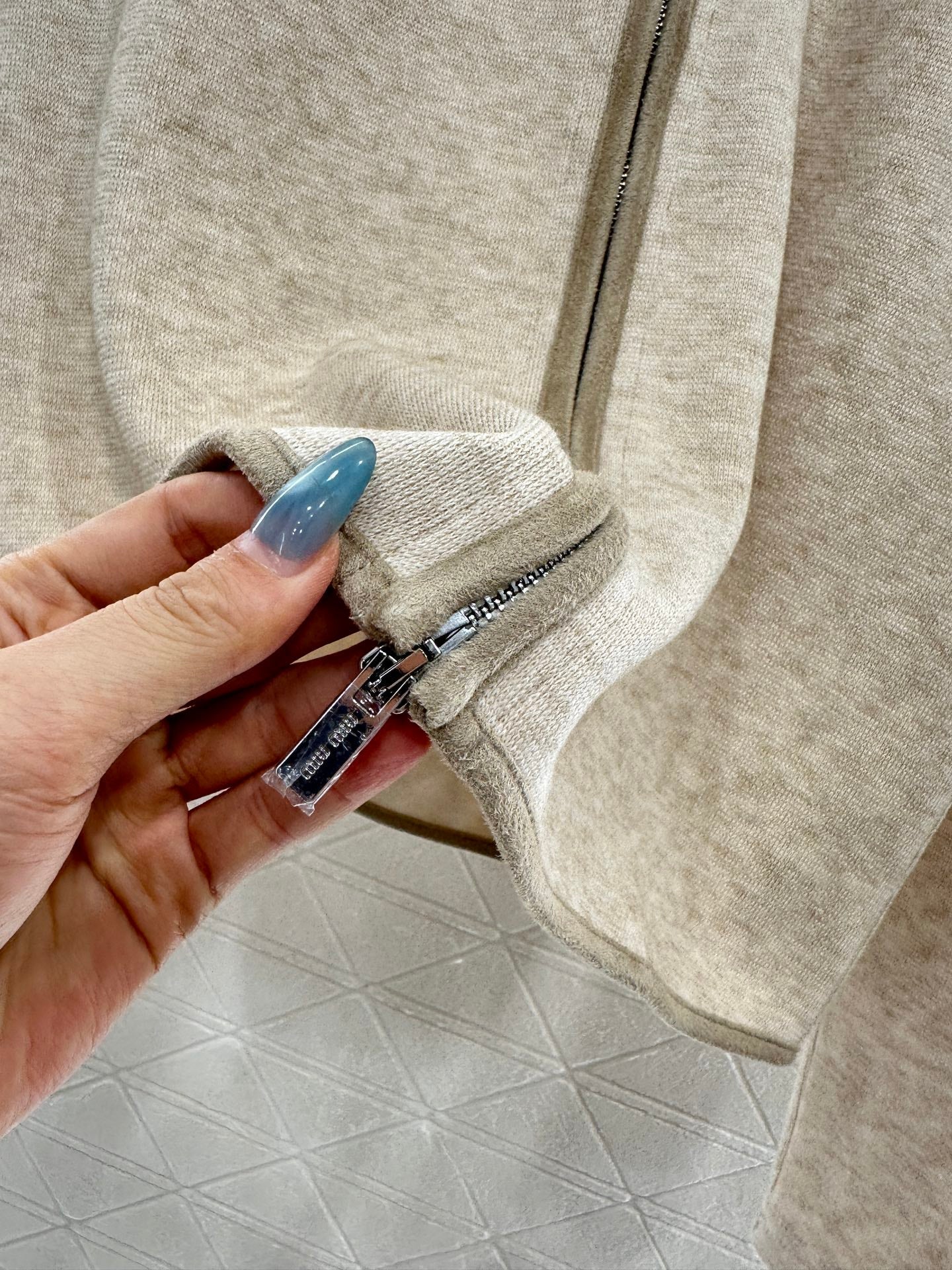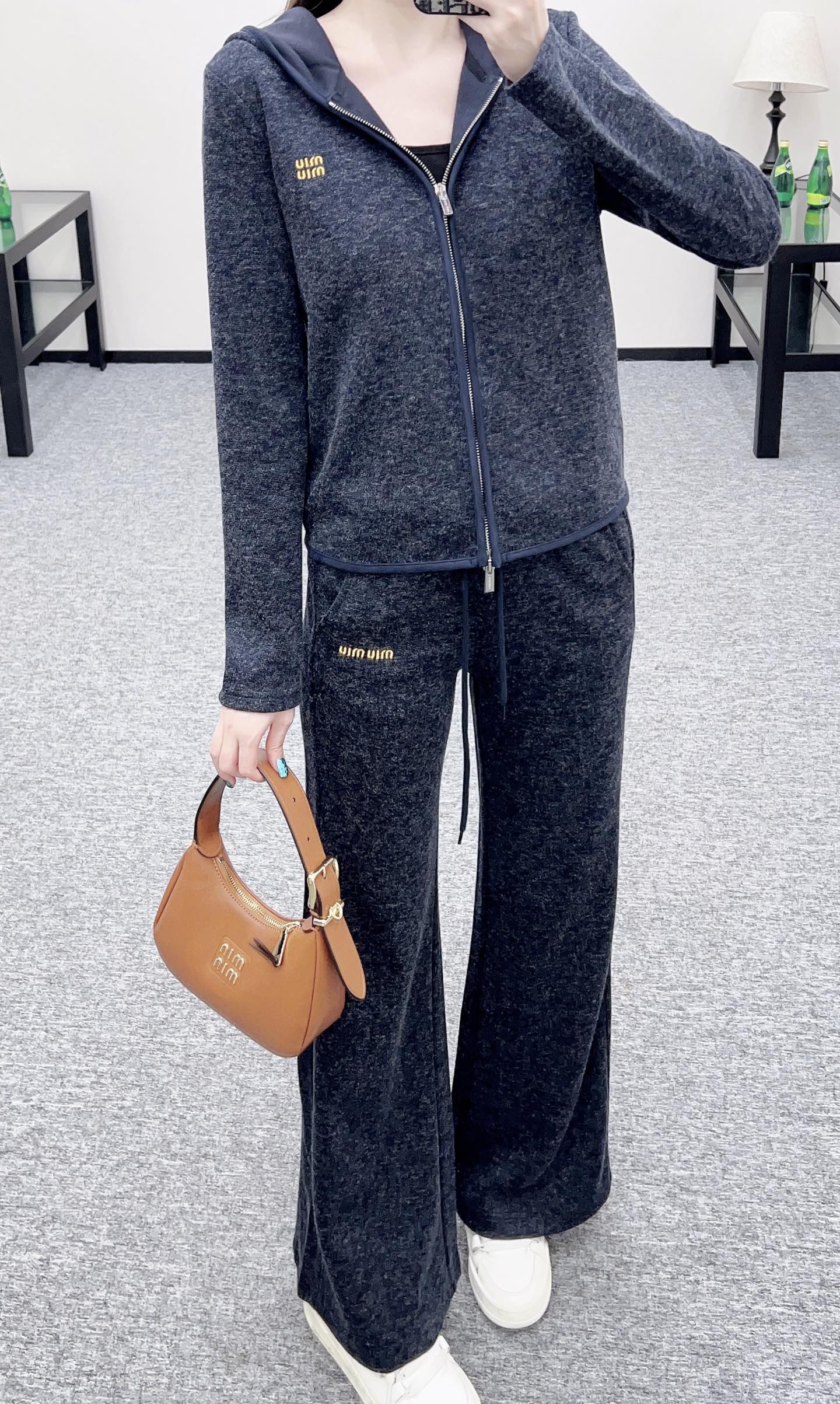 Customized YB imported rayon material, texture and glossy, high-quality appearance, short hooded jacket, zipper opening adjustment, hood collar extending to the front edging, chest embellishment letter logo, highlighting the brand tone, paired with the same series of wide-leg straight trousers, waist splicing threaded elastic stripes, with drawstring tightness, wear style, the whole set of upper body is simple and fashionable, easy to control for daily commuting