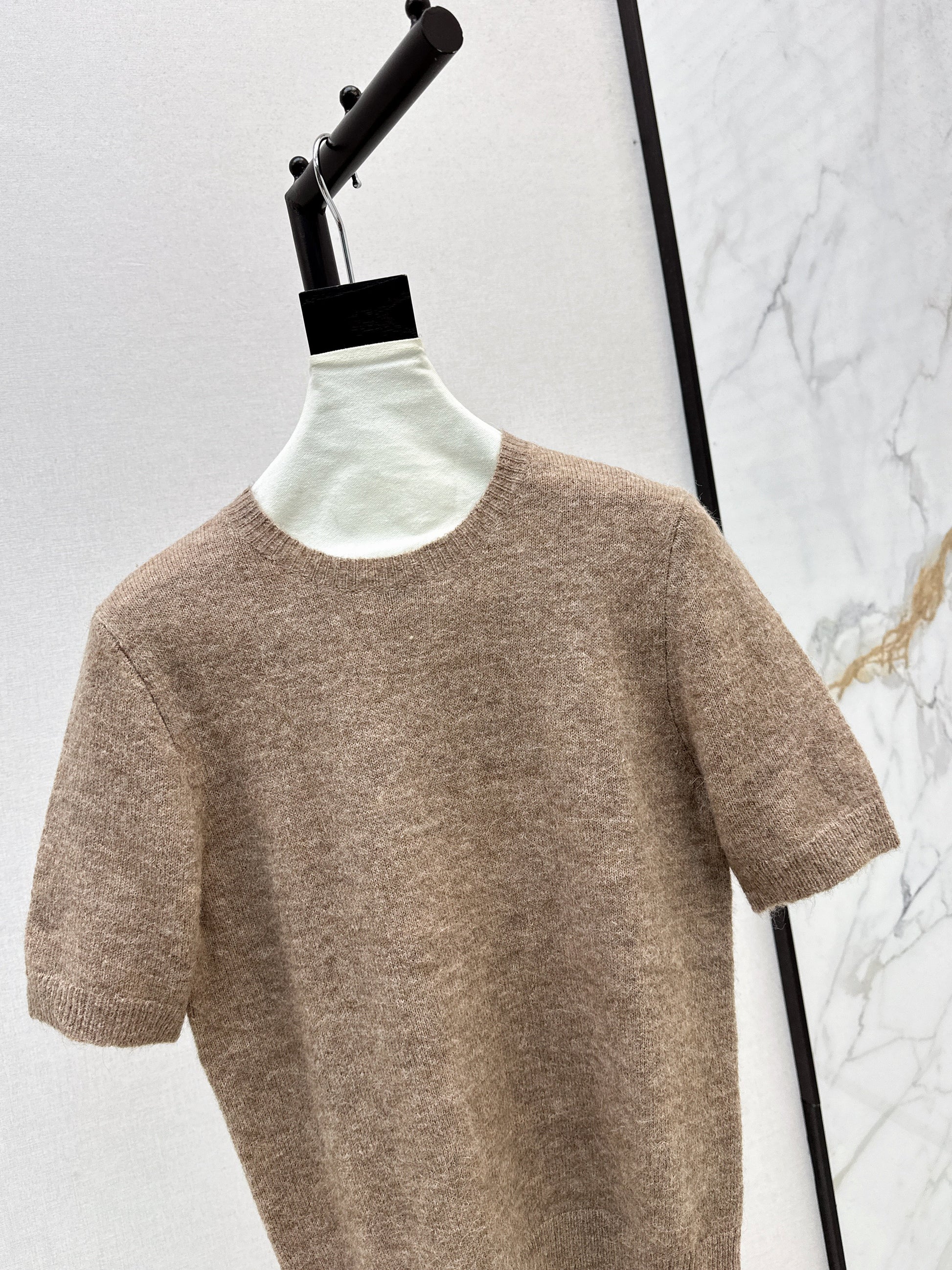 🤎 Minimalist and high-smart outfit look~ Alpaca brushed wool yarn is soft and comfortable with an unbeatable texture. Minimalist round neckline is casual and elegant. A must-have high-end item for fair-skinned women. Classic style makes you look taller and slimmer.