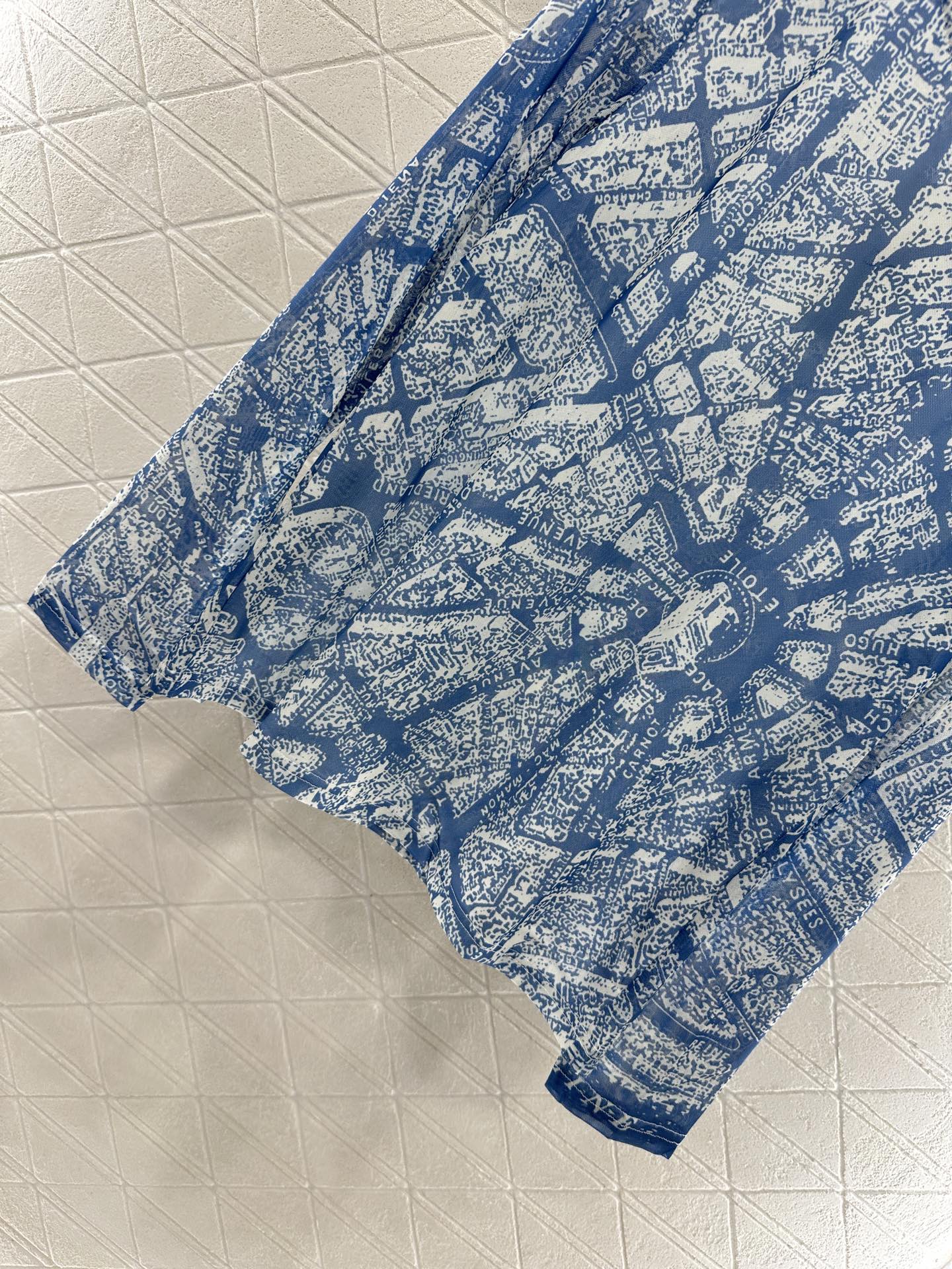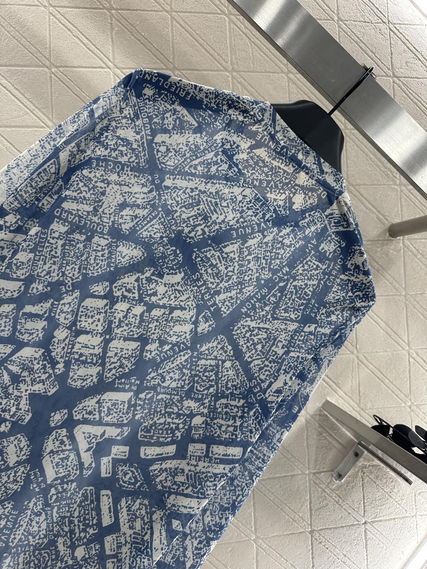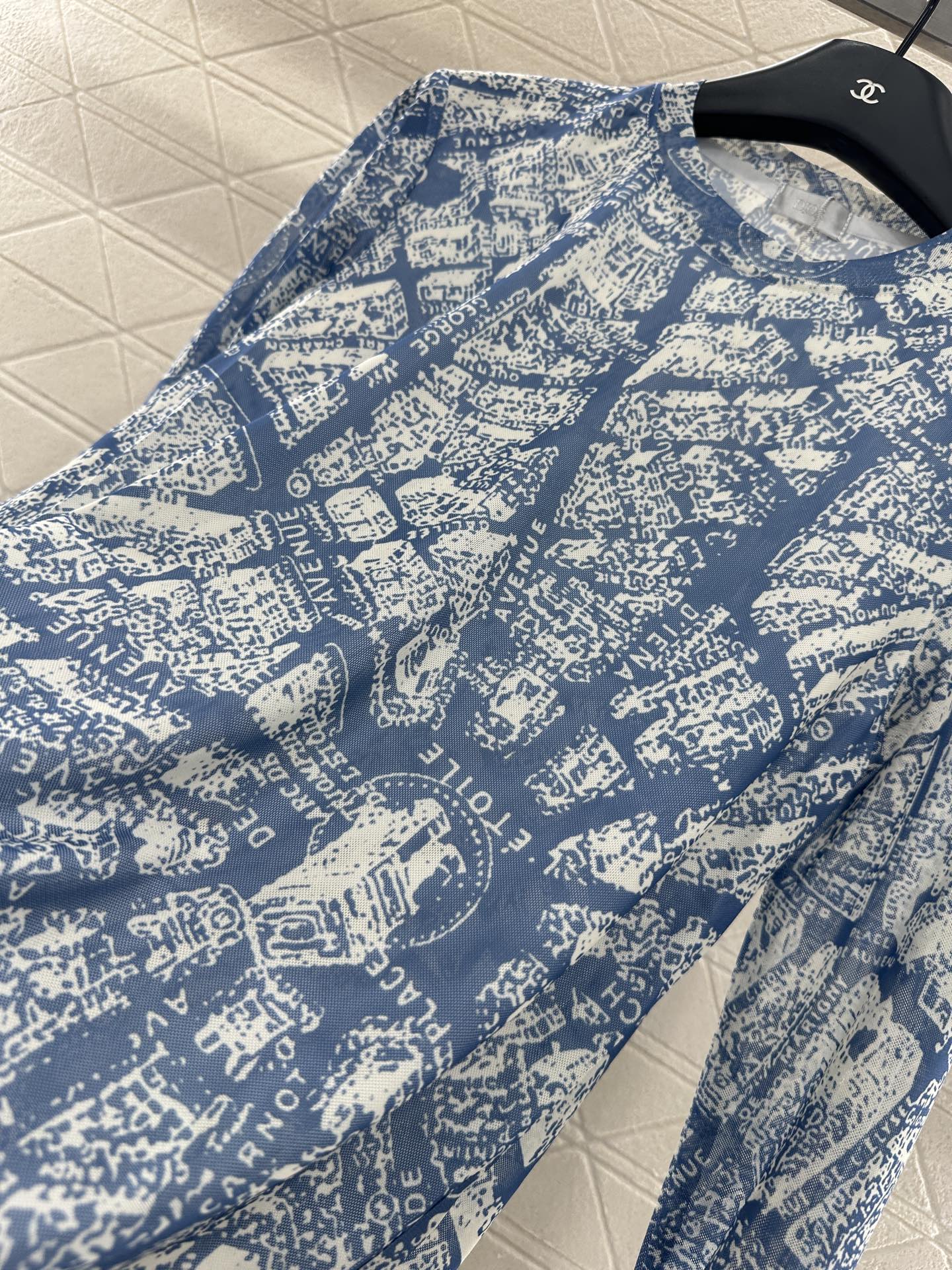 The mesh material is clear, comfortable, and elastic, with a round neck and long sleeves as the base cut. The collar is threaded and the edges are slightly transparent. The blue and white color scheme is refreshing, artistic, versatile, and durable. The pattern is inspired by the active printing technology to complete the urban street view map. It breaks away from the monotony and is tailored to fit the body shape. It looks slim and high-end when worn