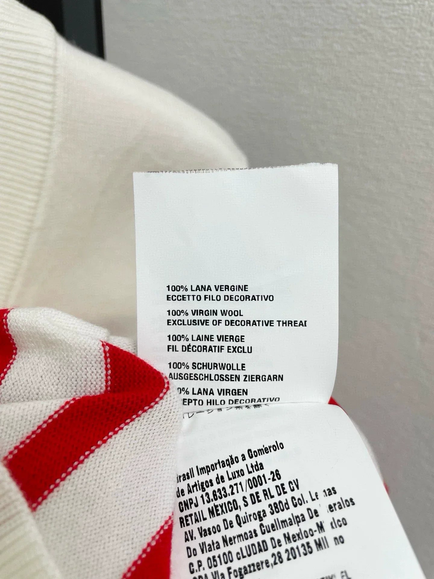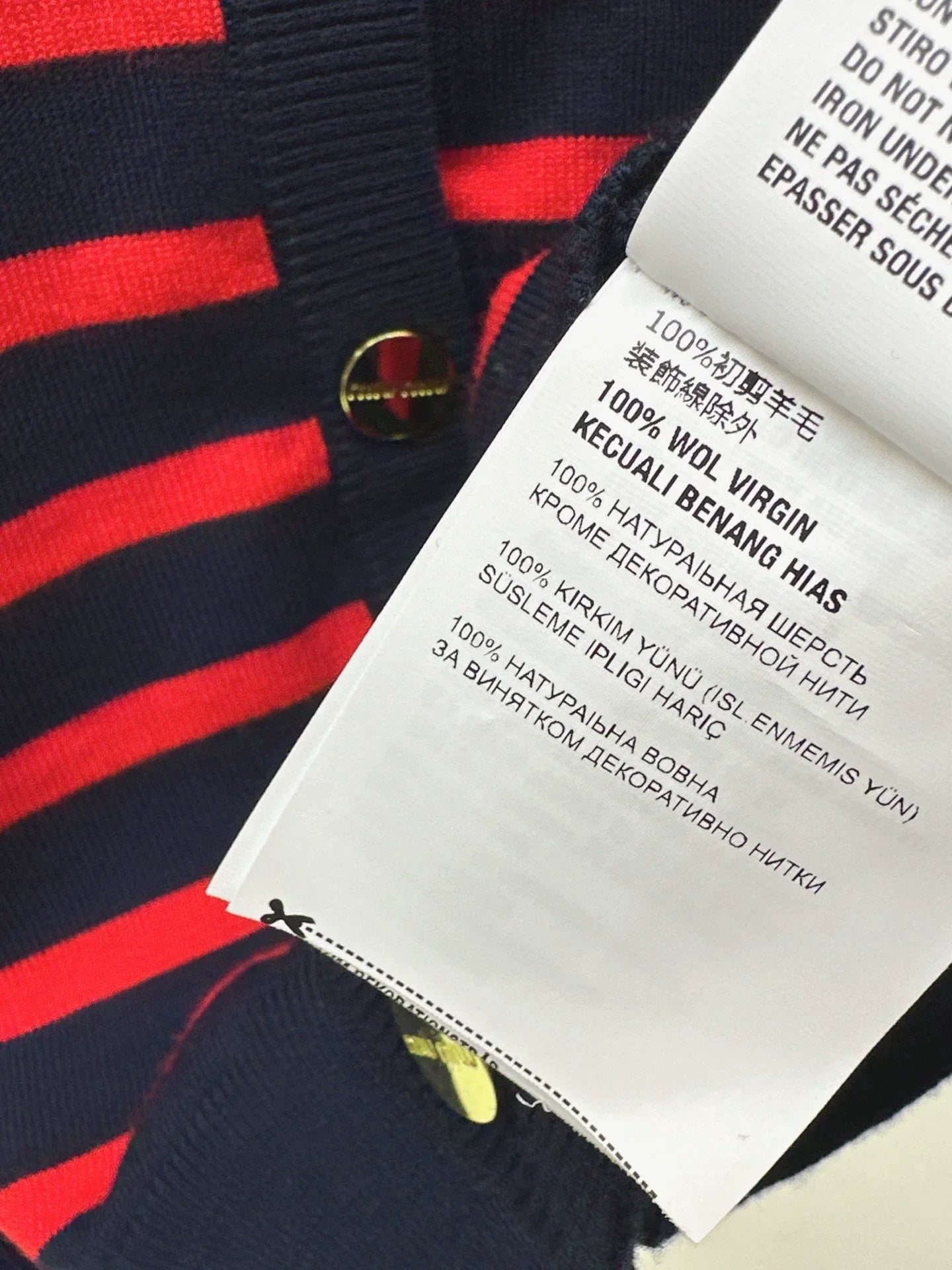 White and red striped contrasting design, embroidered small logo on the chest, embellished with gold buttons. Soft and comfortable. V-neck design, simple and elegant