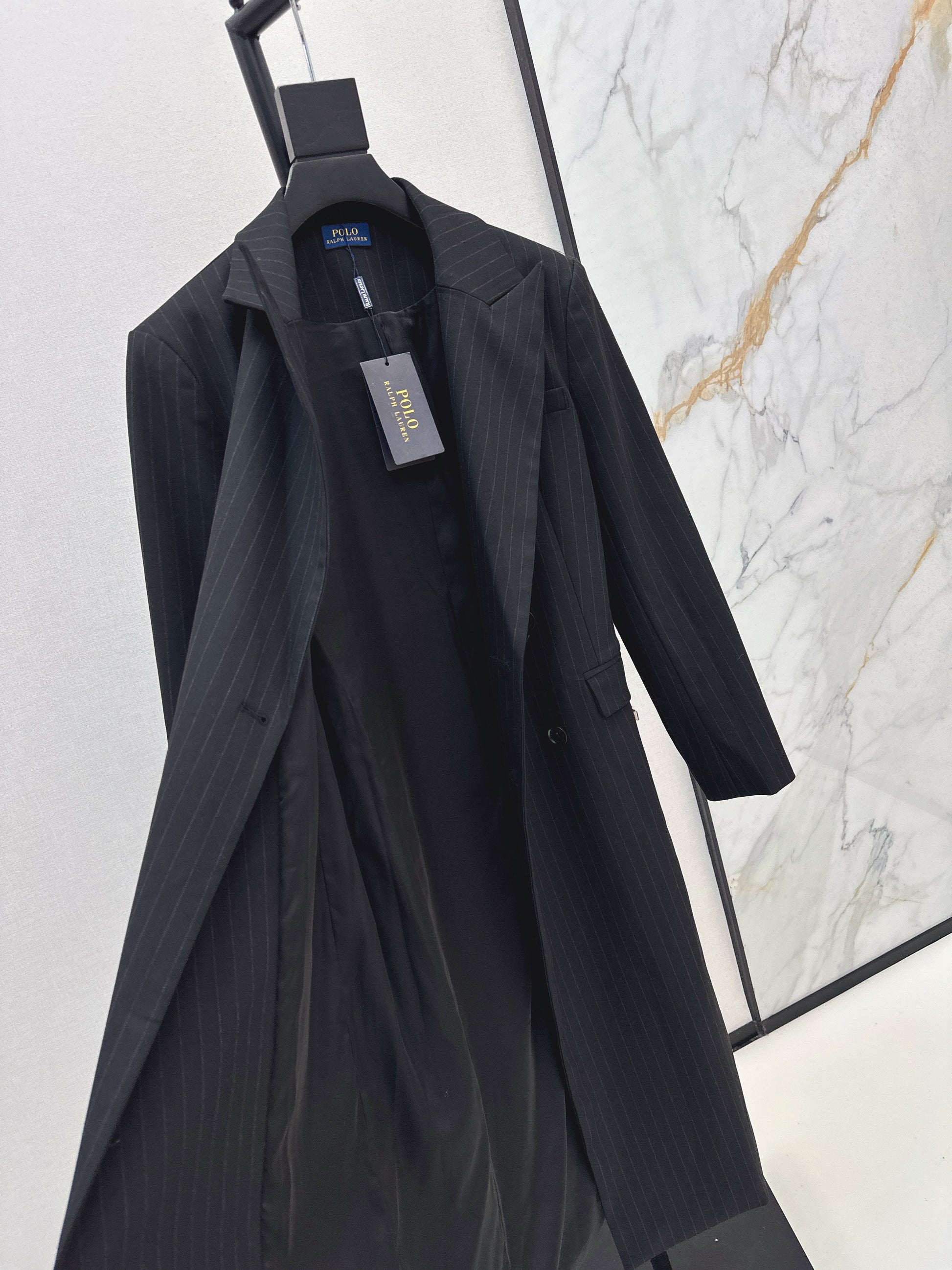 Classic double breasted fashionable combination with H-shaped cut over the knee length, elegant, dignified, stable, and generous workmanship details are also great. The vertical stripes have a visual effect of elongating the body, making it appear thin and tall. Paired with a waistband design, the waistline can be raised in one second. Whether worn alone or in layers, it has its own sense of fashion. It can be used for commuting or daily life