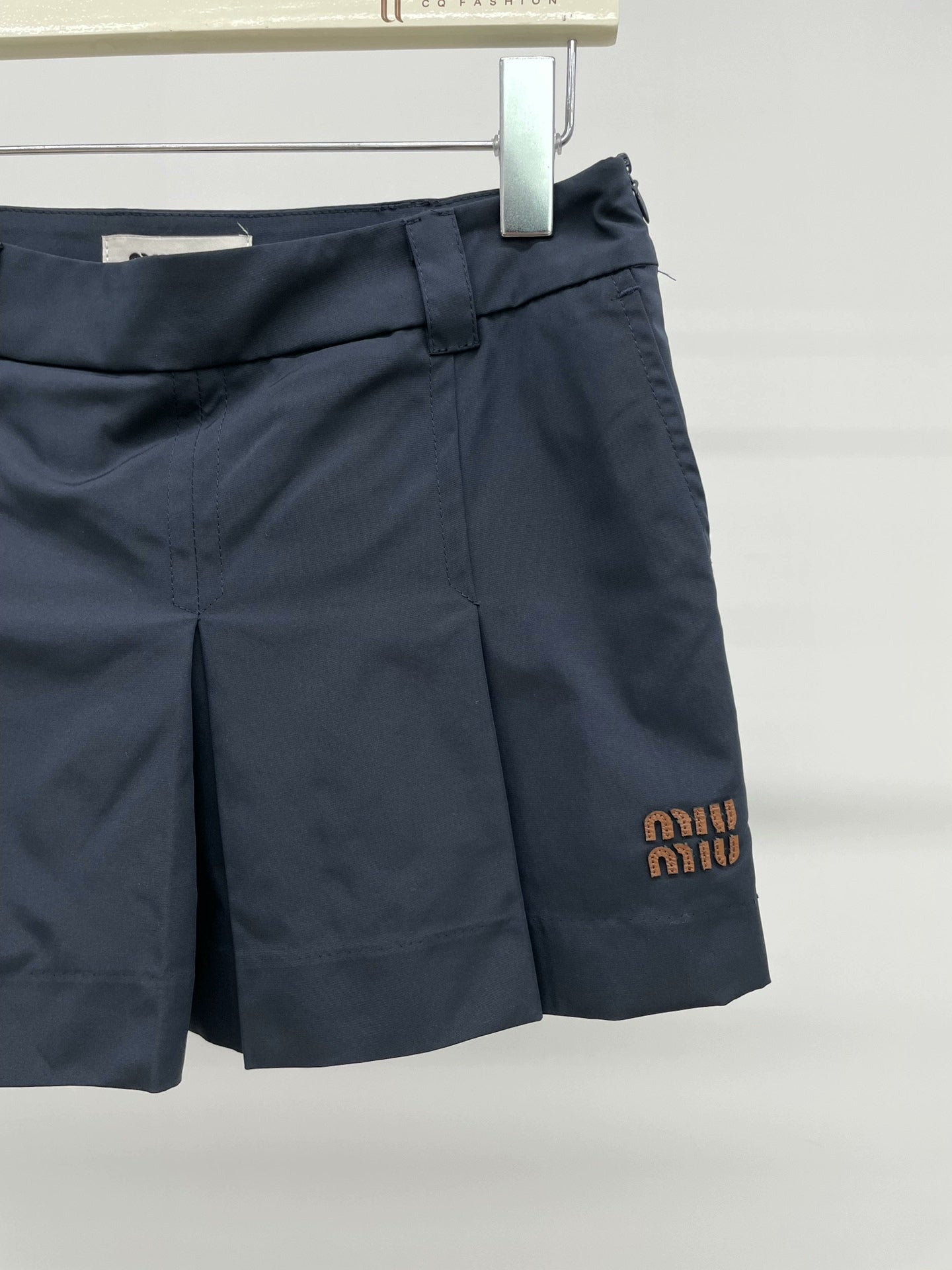 Leather label embroidered logo pleated loose skirt, customized imported fabric, ultra-high-end navy blue color, the version is particularly tall! The cut is neat and simple, full of style, customized high-end selected cotton material! The skirt has a leather logo logo. Don't miss this one if you are a detail-conscious person!