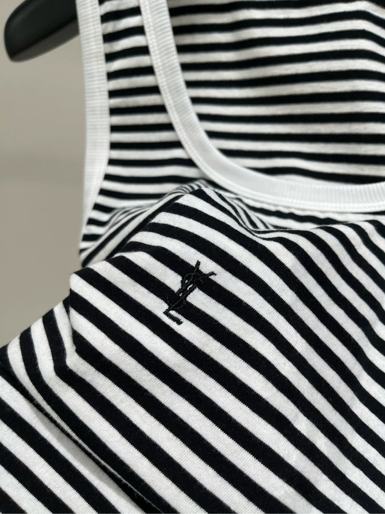 The embroidered logo on the chest and the black and white stripes are full of design sense. The loose version is suitable for everyone, and the upper body is covered with flesh and looks super thin. It is recommended to match it with a skirt and jeans, which is beautiful and versatile!