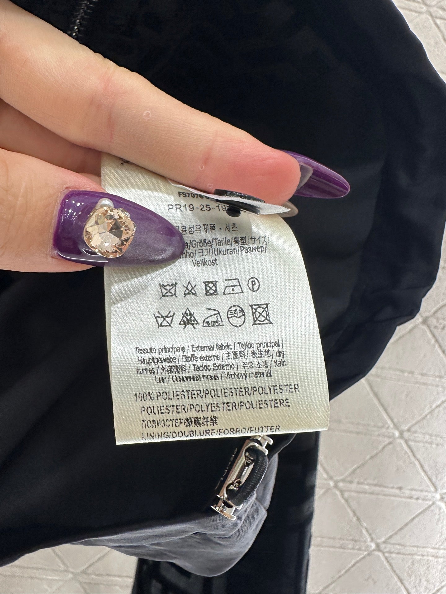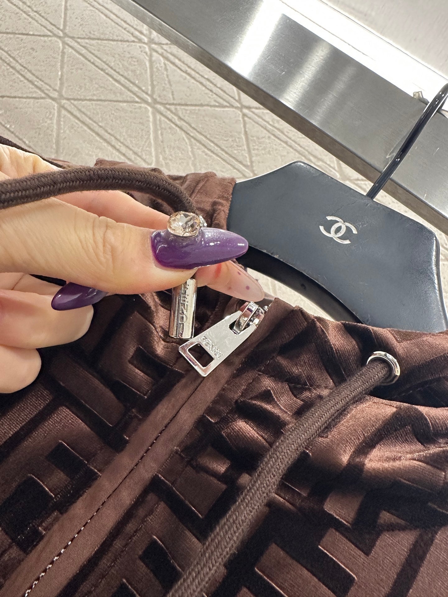 Jacquard cotton material, glossy texture, high-end style, lapel suit cut, single row black gold letter placket, simple and atmospheric, covered with iconic letter jacquard pattern throughout the body, waist buckle belt outlining curves, adding design highlights, high-end style, covering hip and crotch lines, shaping and slimming, enhancing body tolerance, adding noble and elegant charm, commuting and attending important occasions, showcasing luxurious taste.