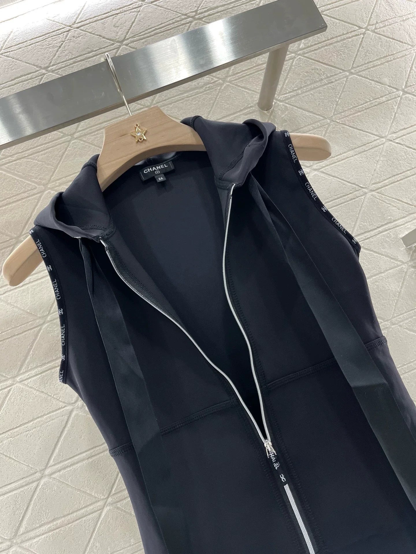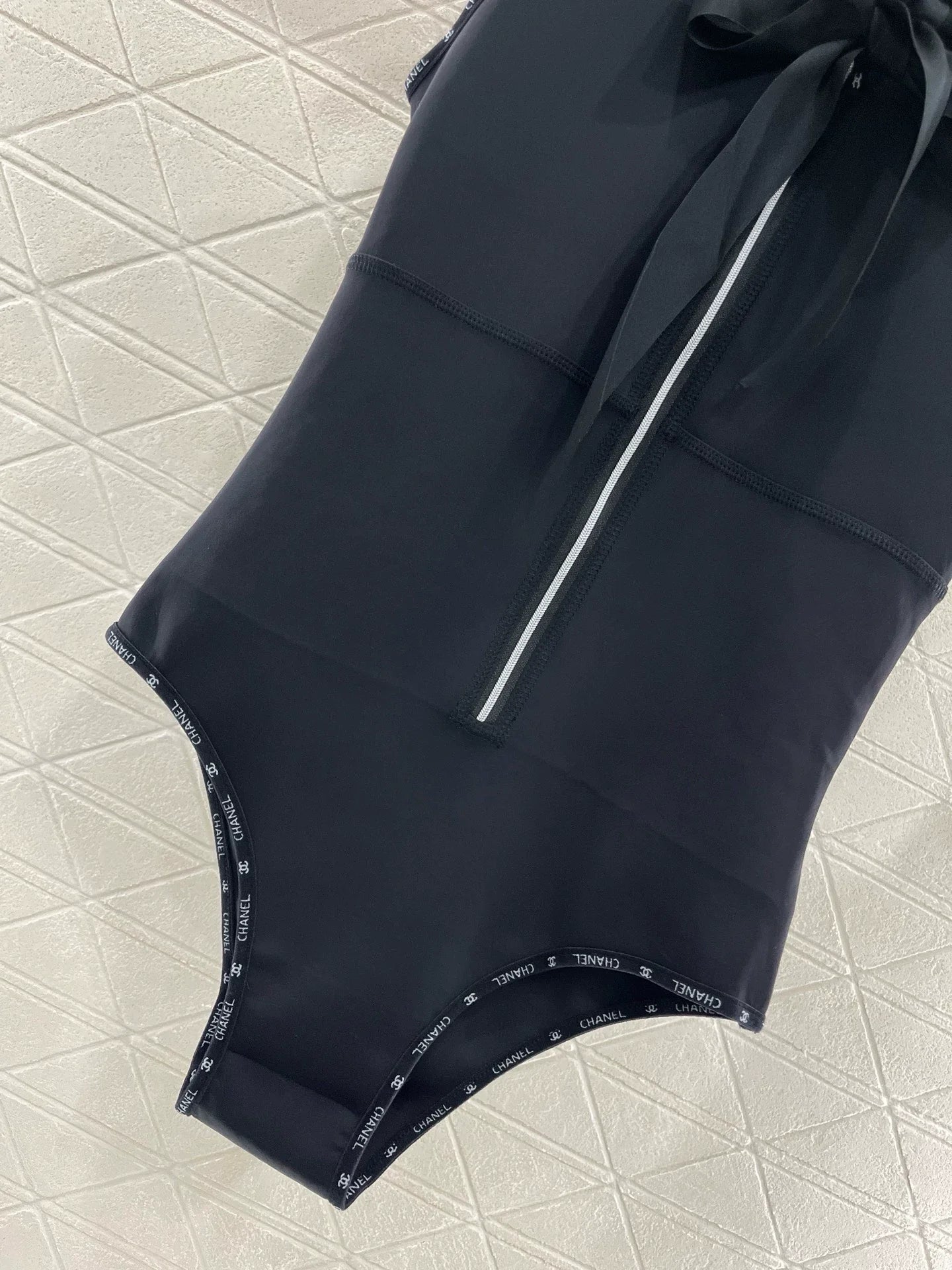 Soft and skin-friendly Comfortable and stylish Hooded zipper one-piece tankini style Zipper semi-placket neckline adjustable Plain body with monogrammed webbing ➕ neckline with bow tie