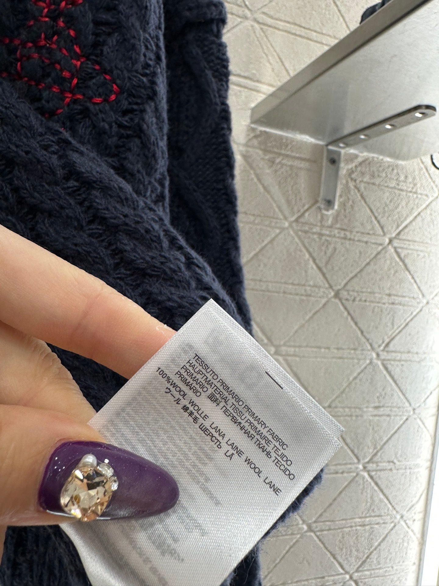 Woolen yarn weaving, with a glossy texture, soft and skin friendly, zippered cardigan cut, flat needle texture, slimming without losing fashion sense. The collar and cuffs echo the hem with solid color thread edging, tightening and fitting the body shape. The large hook flower uses color arrangement to form a letter pattern decoration, full of vintage sense, showing the fashionable brand tone. The autumn atmosphere is versatile in color matching, relaxed and lazy,
